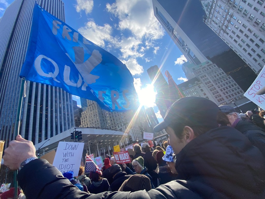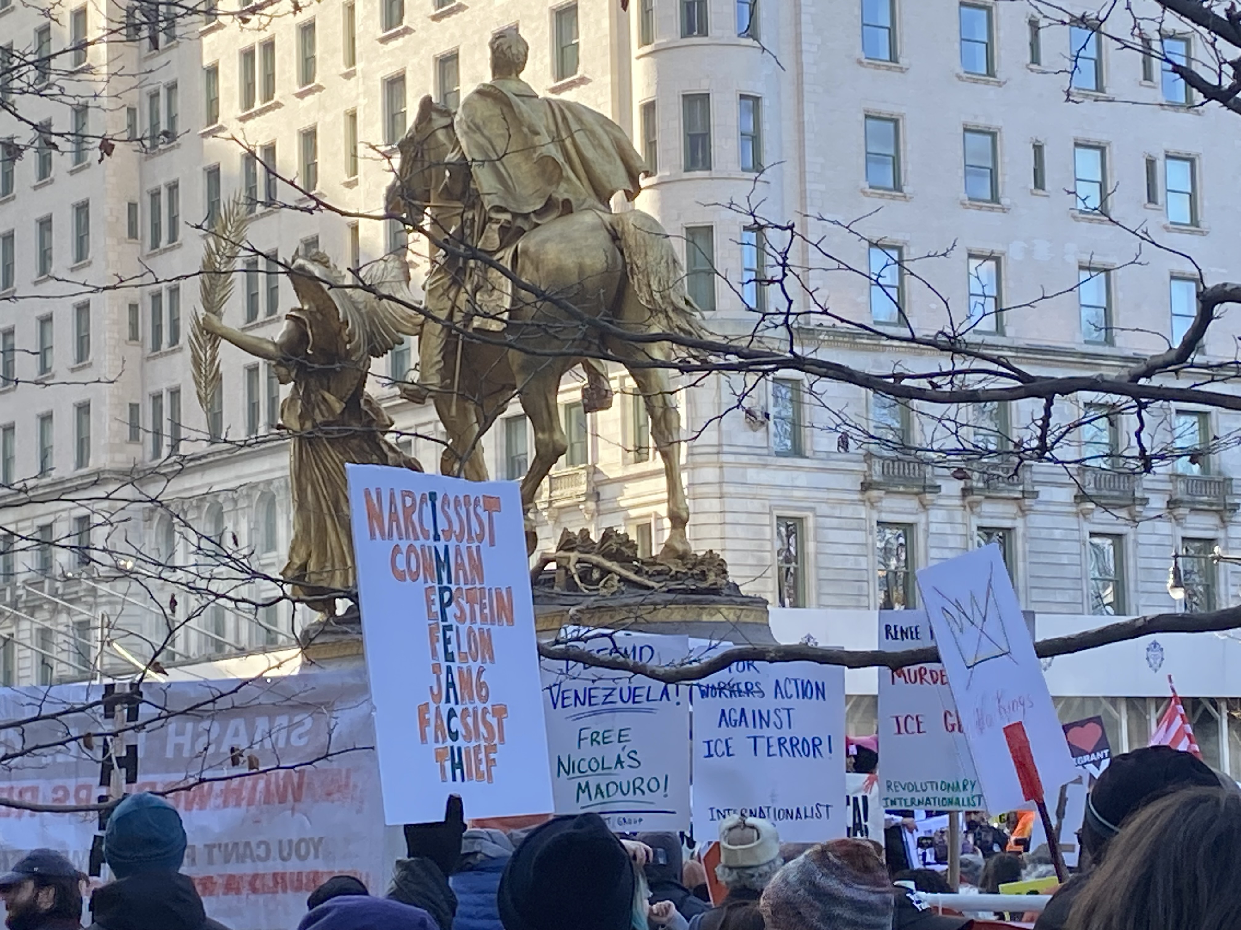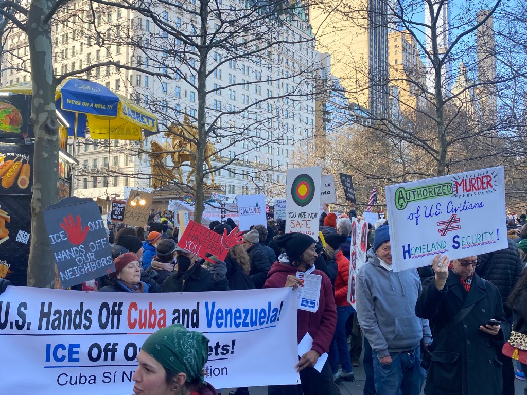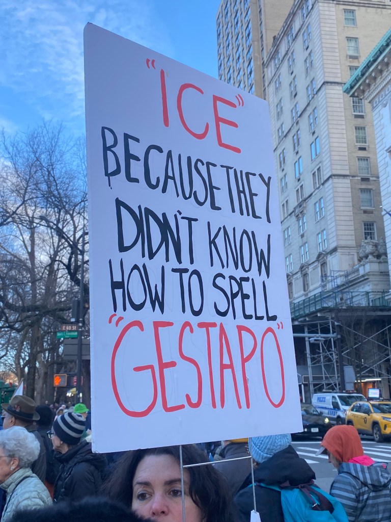 Photo/video diary of the protest gathering and march in NYC January 11, 2026