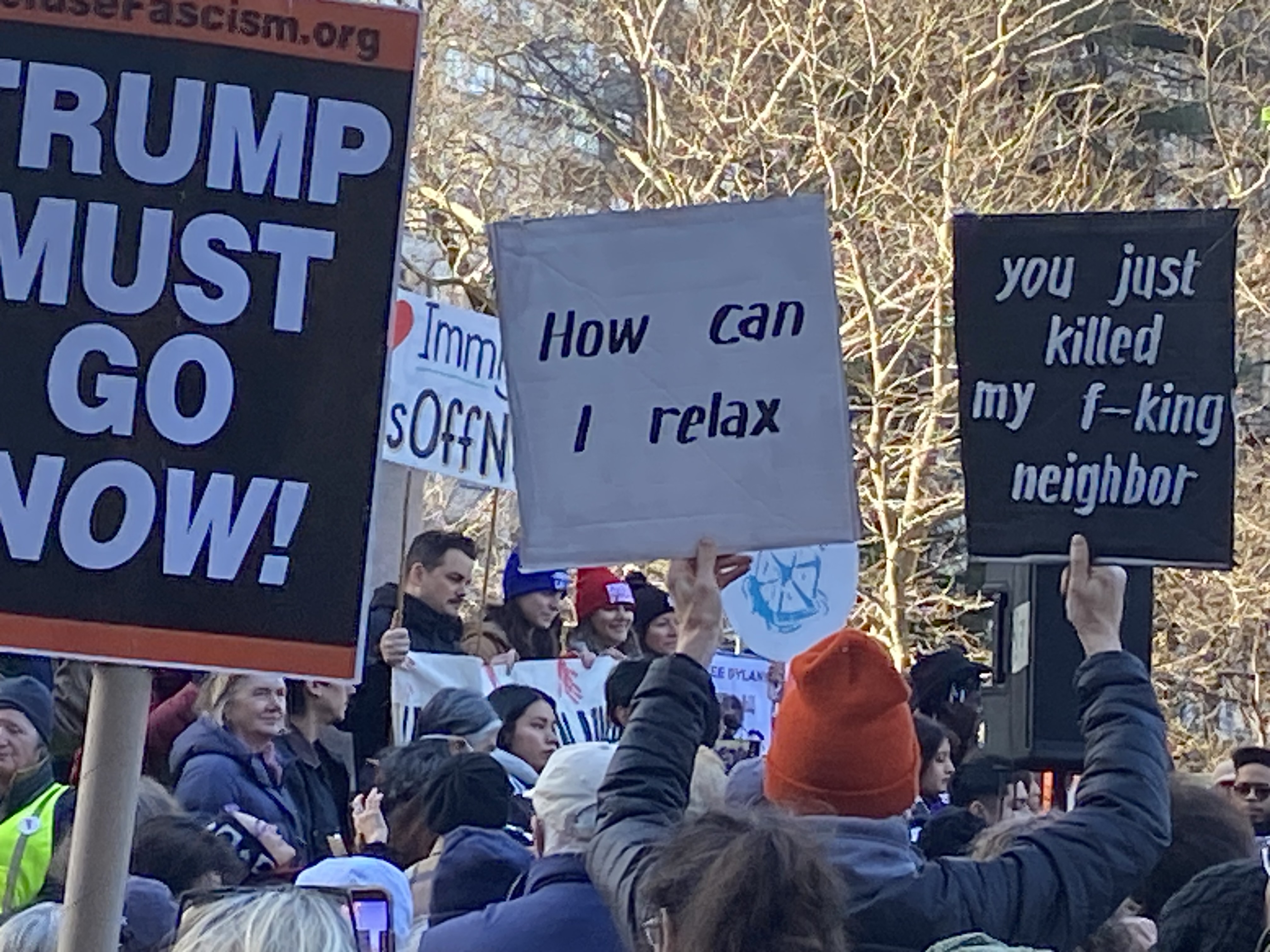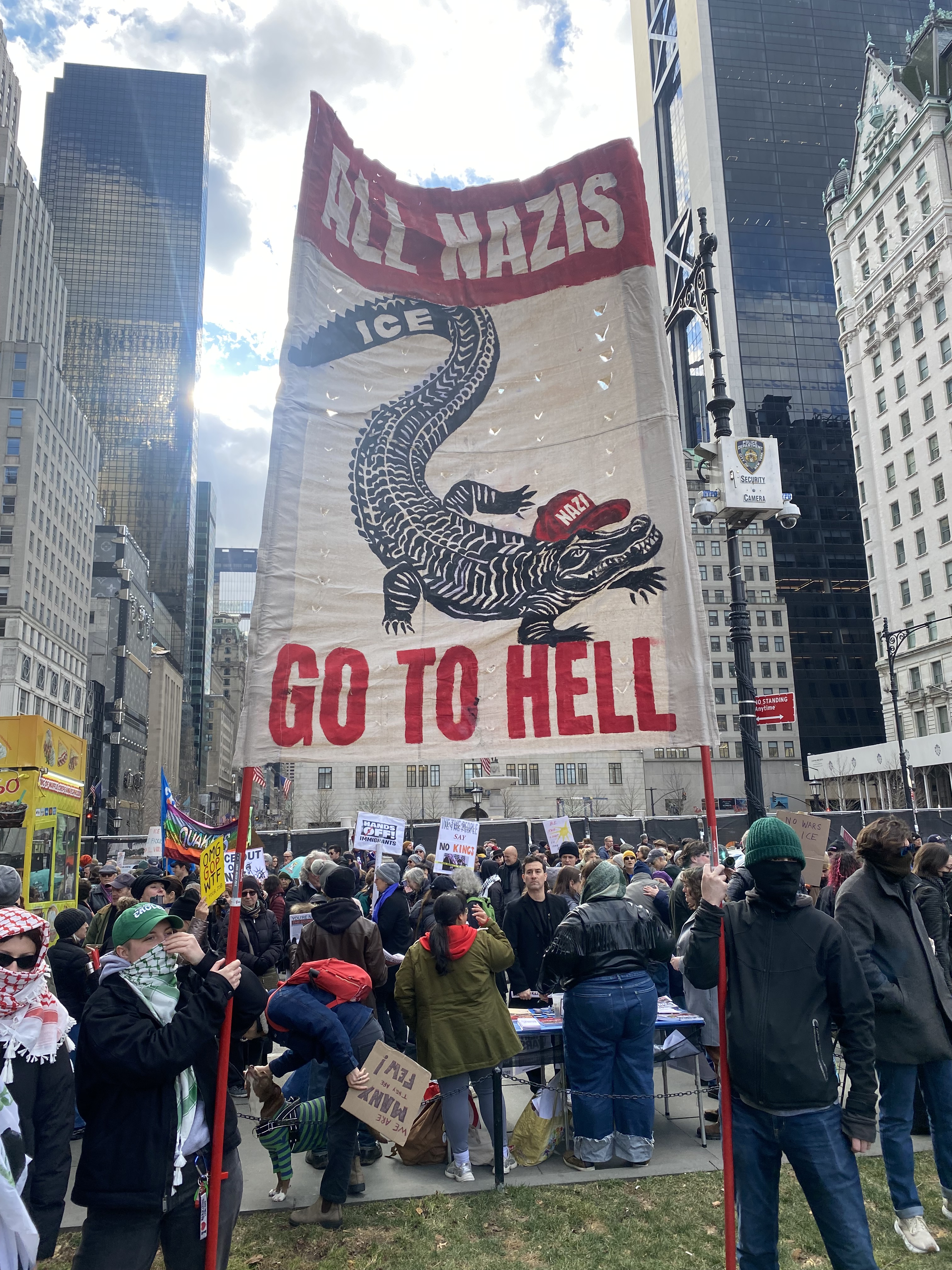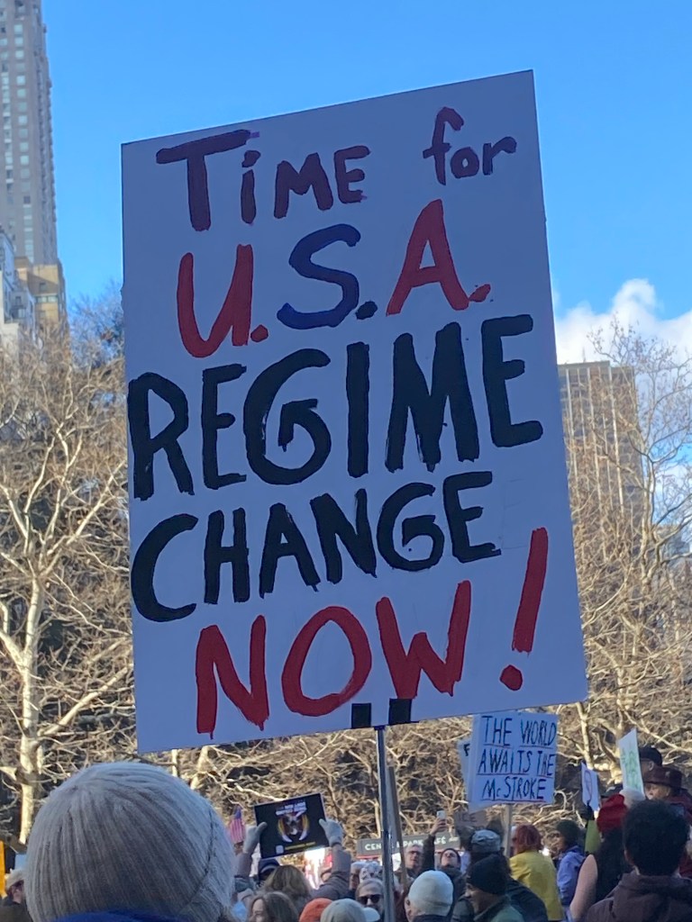 Photo/video diary of the protest gathering and march in NYC January 11, 2026