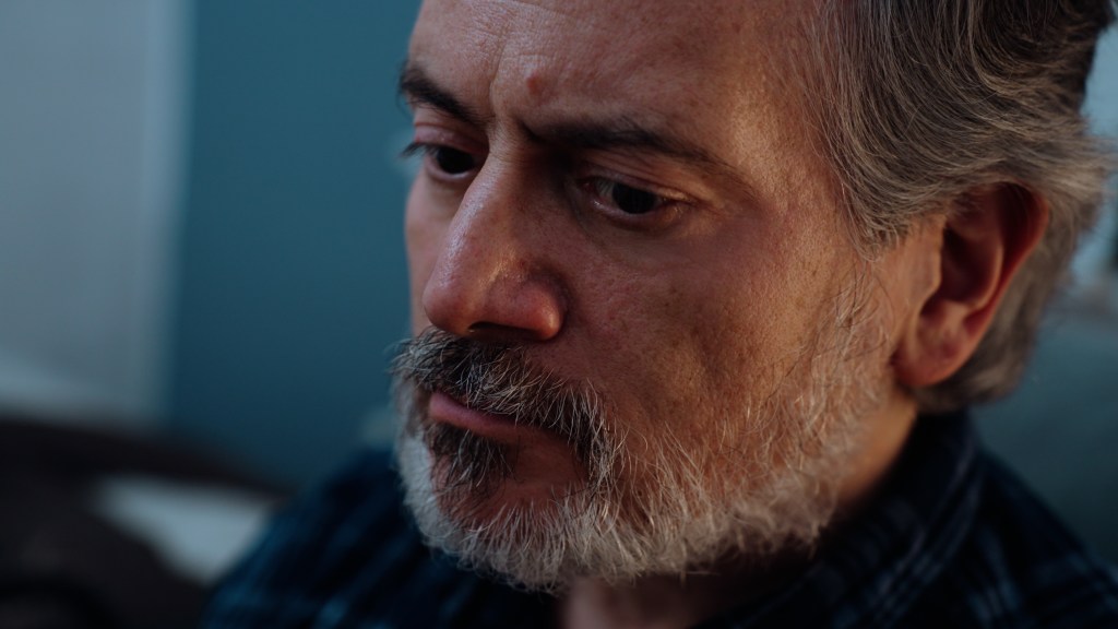 After I got cast, Julio sent me the script and I saw then for the first time that the dialog was written down in English and in Spanish. That’s when Julio asked me if I could do the lines in Spanish – he was willing to do it just in English but thought he’d ask; then he might edit an English and a Spanish version of the film (Mr. Scaturo is the only character who speaks in this mostly dialog free film). I told Julio I don’t speak Spanish, but as there were not many lines I figured I could learn how to say them phonetically. And then told him since I speak fluent German, how about also we make a third version in German.