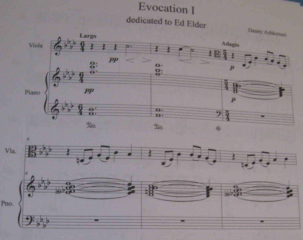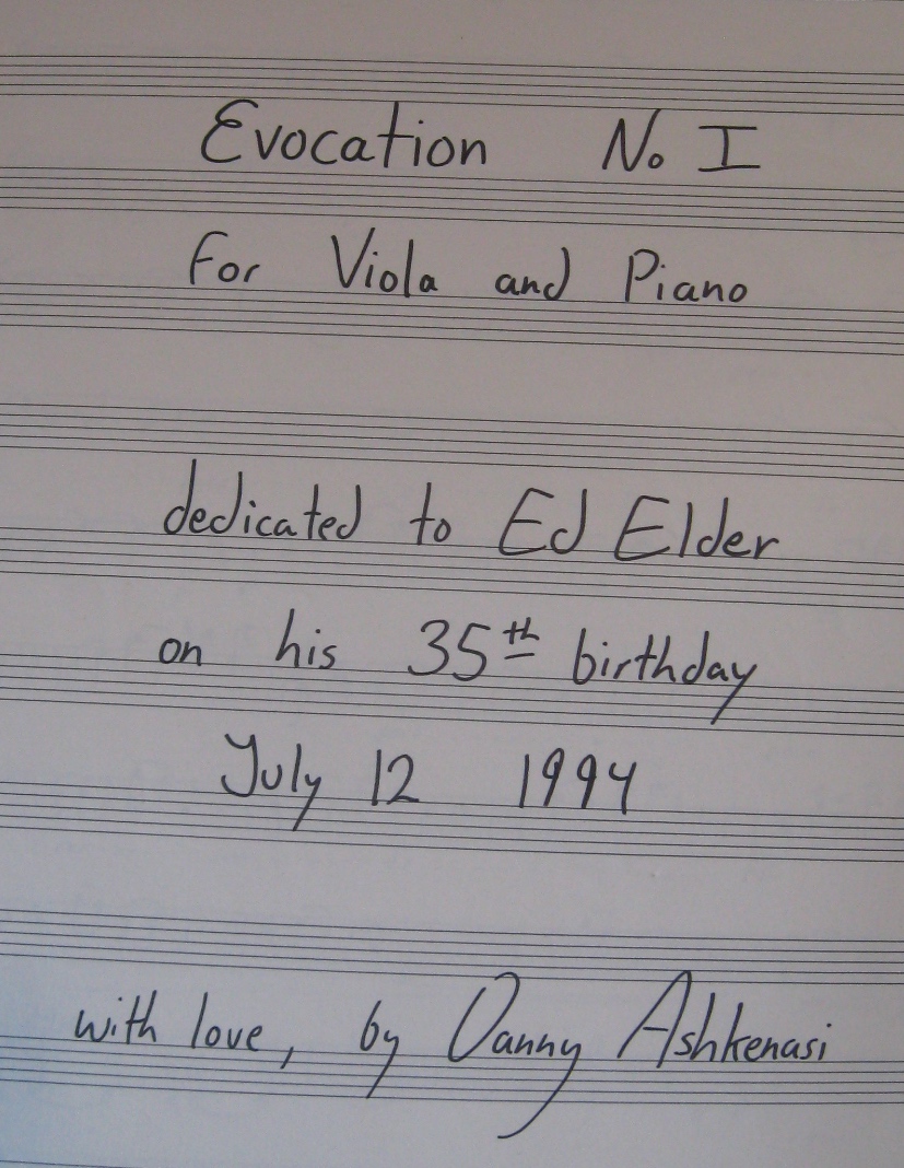 Today is my husband Edward Elder’s birthday. He is the mustachioed fellow in the picture above. One of my birthday gifts for him is a new viola/piano duet. He plays the viola, I play the piano. It has become a tradition in our relationship that I compose a new viola piano duet for him every year for his birthday. I call these pieces “Evocations”. Today Ed will receive Evocation XXII.