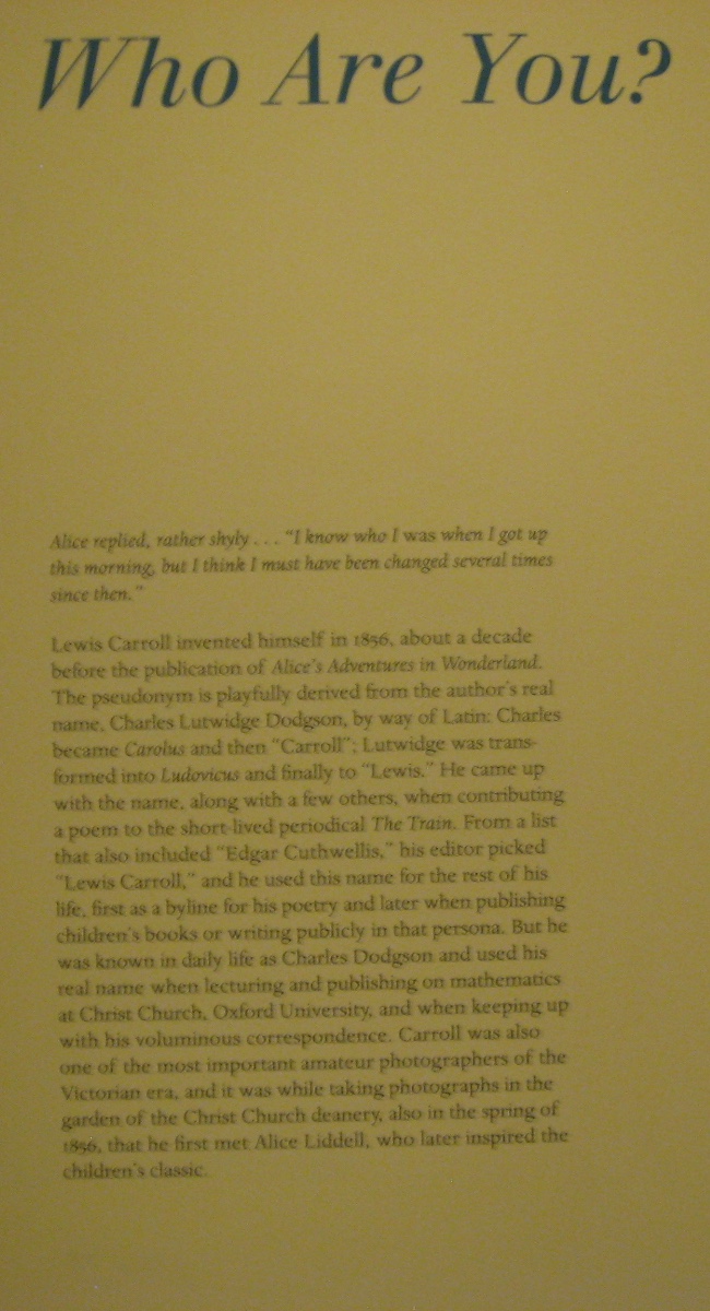 The name Lewis Carroll itself is an identity that the author, born Charles Lutwidge Dodgson, created (see right).