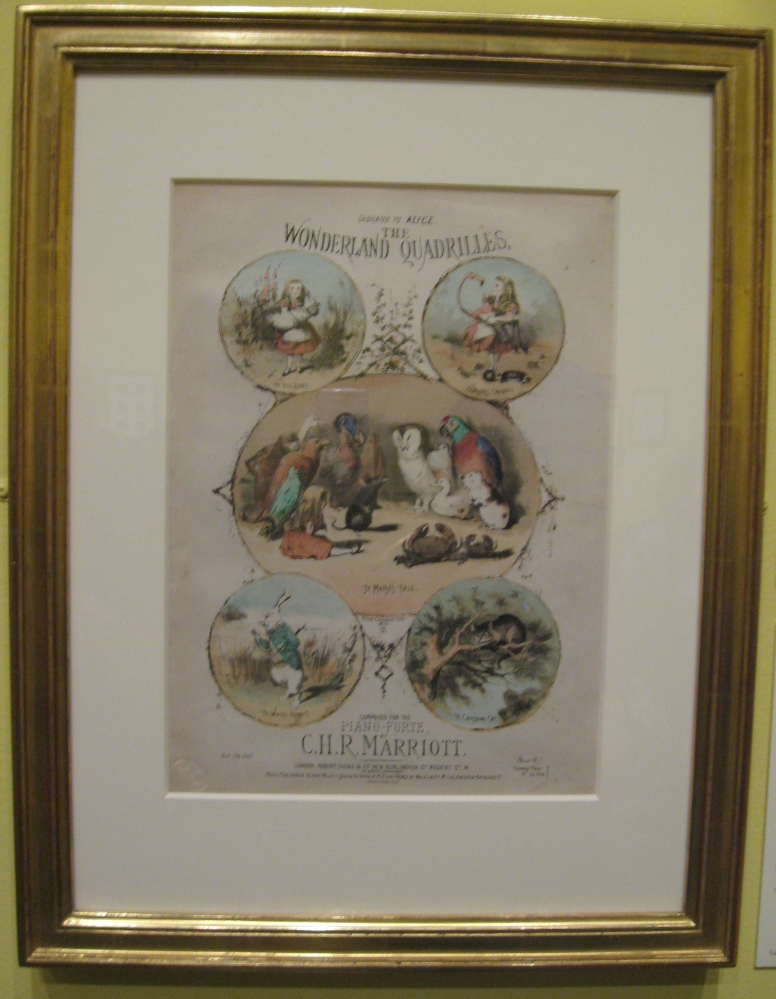 We joined a tour in progress.  The volunteer guide regaled us with the story of how Carroll, who initially independently financed the publishing of his books, considered the first press run not up to his exacting standards.  So a new edition was produced at great expense.  The “spoiled” books were not scrapped, however, but were shipped out for sale in the US market.  I guess what wasn’t good enough for home consumption was just fine for the uncouth Yankees.