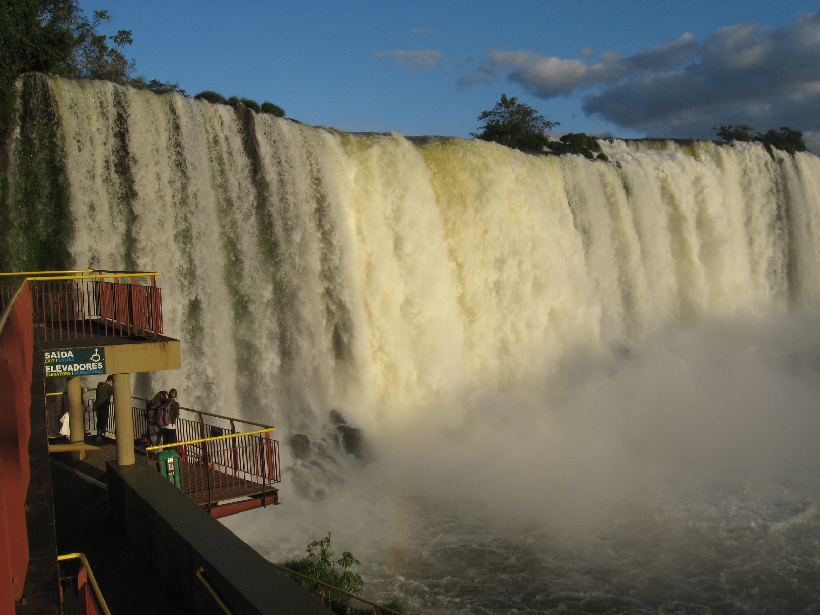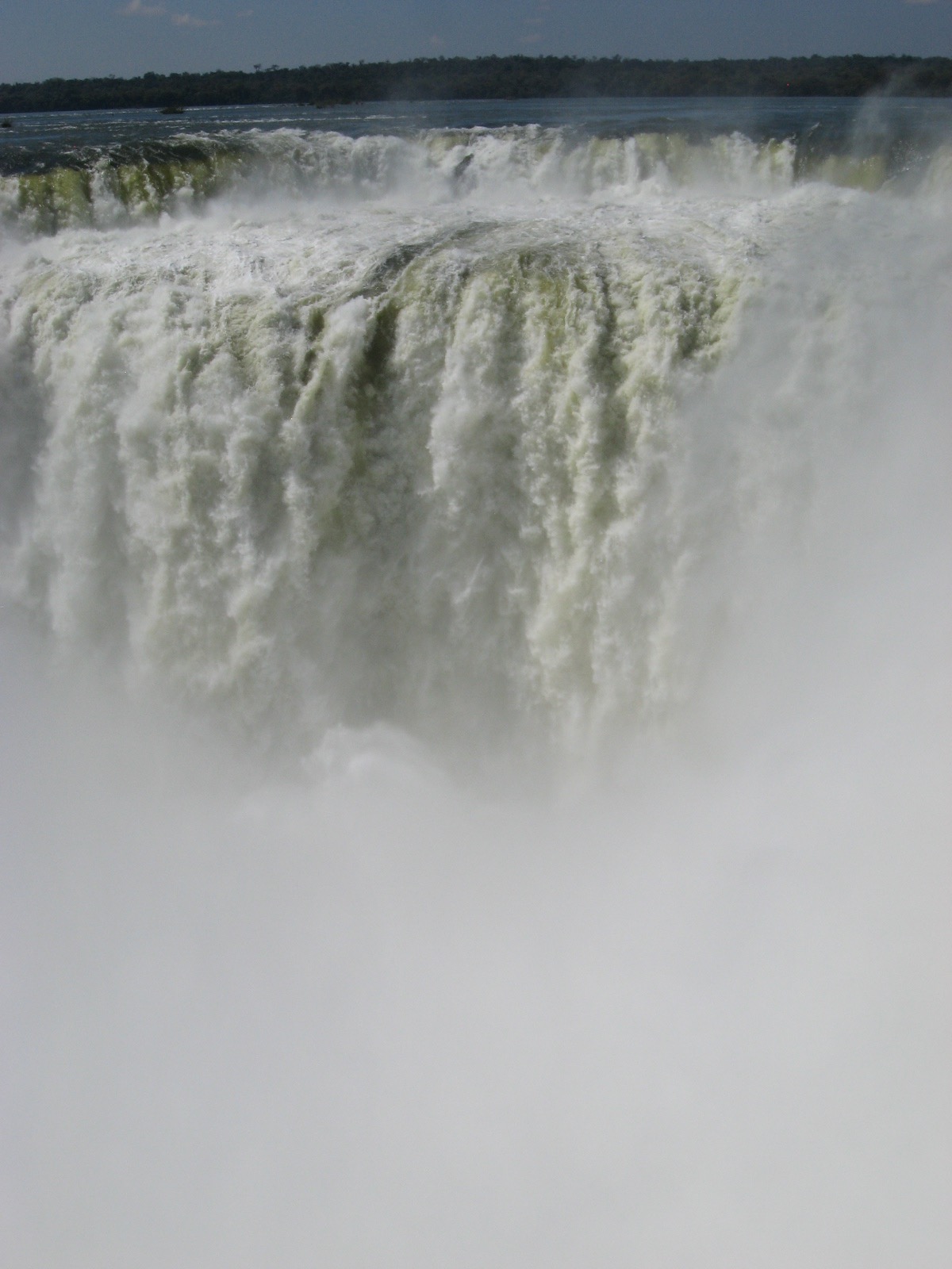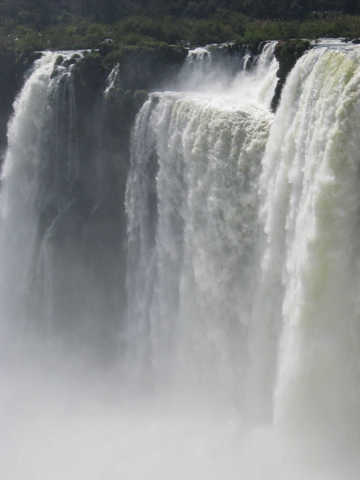 Time for another bout of Two-fisted Touristing with musical accompaniment. Today the amazing Foz do Iguacu waterfalls, which cascade partly in Brazil, where Ed and I first encountered them three years ago, and partly in Argentina, where we saw more of them on a day trip visa the next day. This collection of enormous waterfalls covering several square kilometers requires at least two days to be fully explored (regardless of border crossing issues). They are astounding in person. I hope these pictures give at least some indication of their awesome power and beauty.
