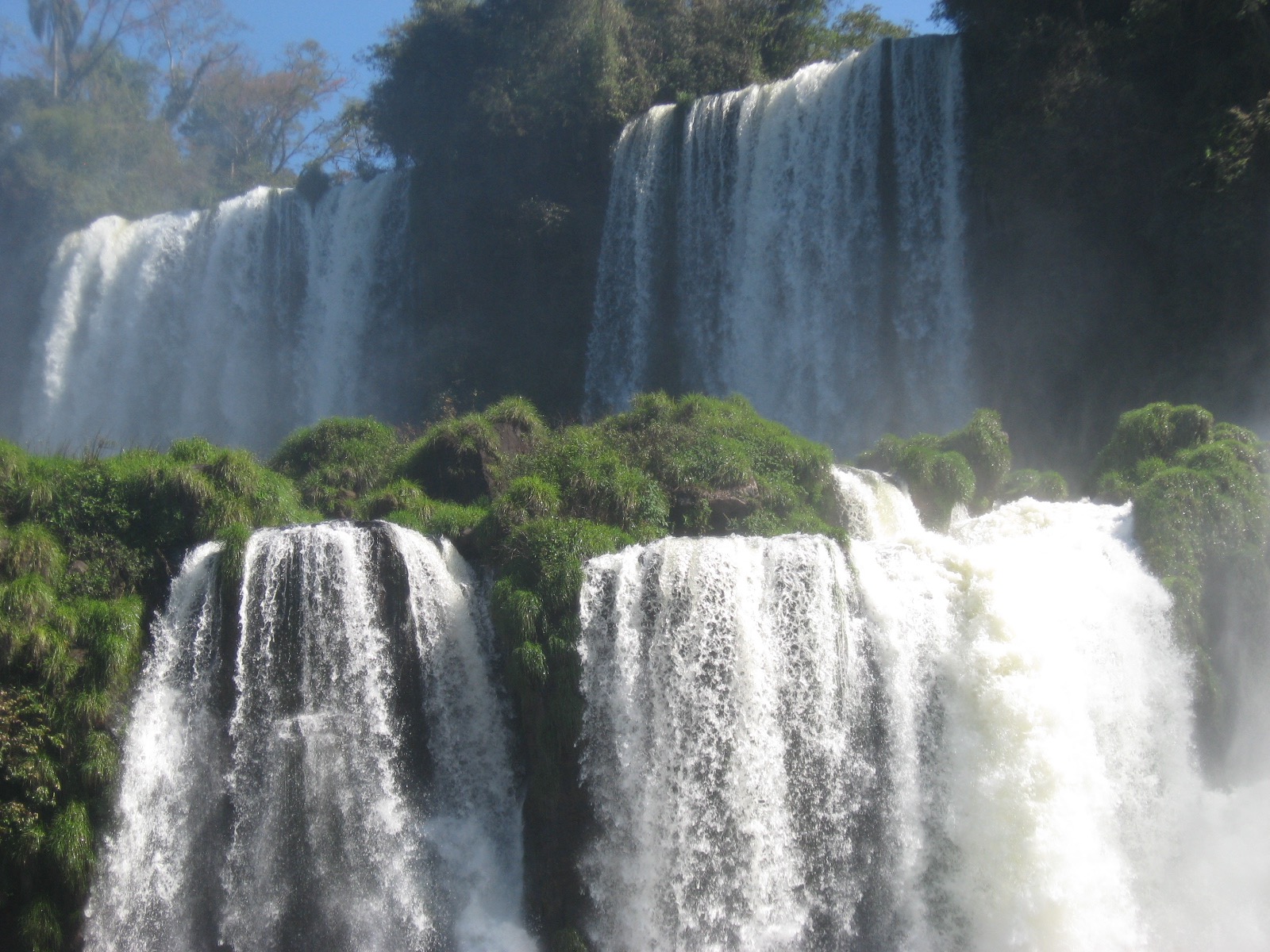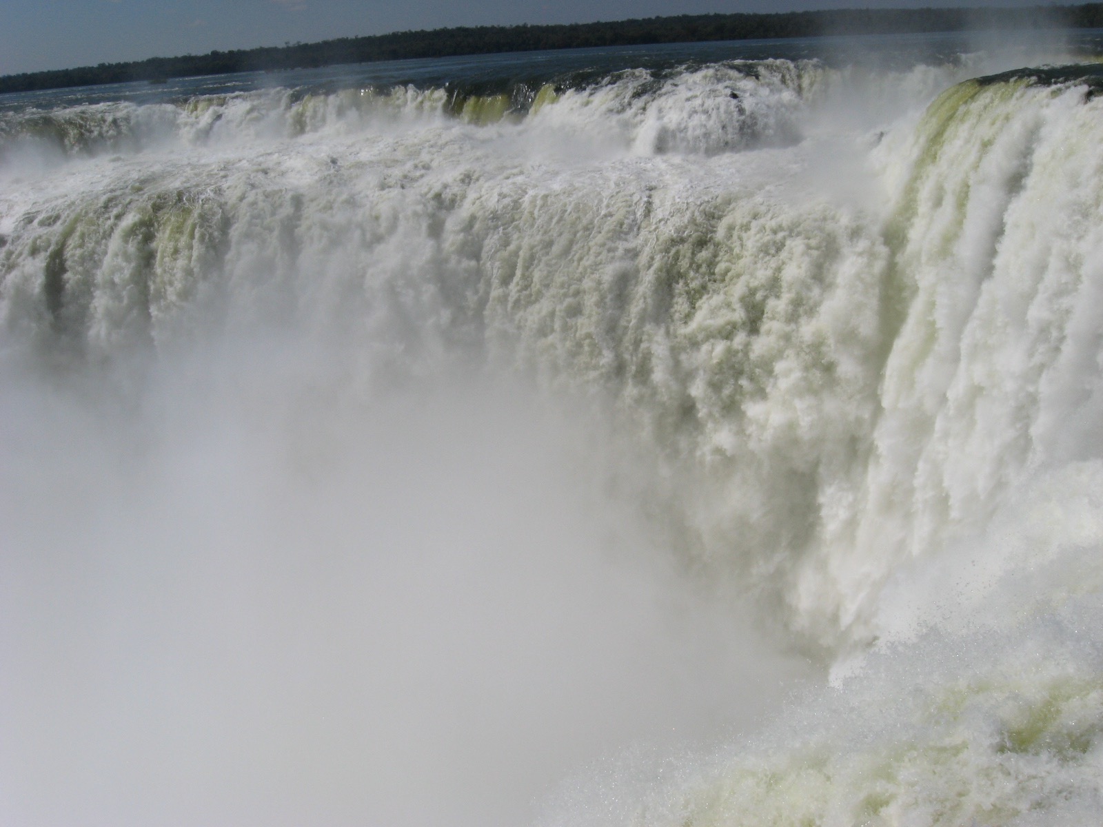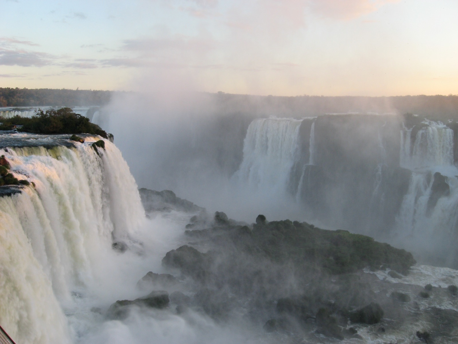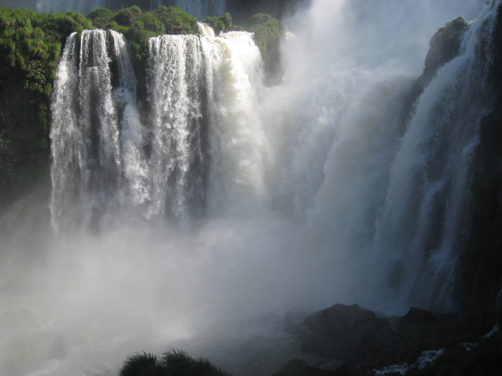 Time for another bout of Two-fisted Touristing with musical accompaniment. Today the amazing Foz do Iguacu waterfalls, which cascade partly in Brazil, where Ed and I first encountered them three years ago, and partly in Argentina, where we saw more of them on a day trip visa the next day. This collection of enormous waterfalls covering several square kilometers requires at least two days to be fully explored (regardless of border crossing issues). They are astounding in person. I hope these pictures give at least some indication of their awesome power and beauty.