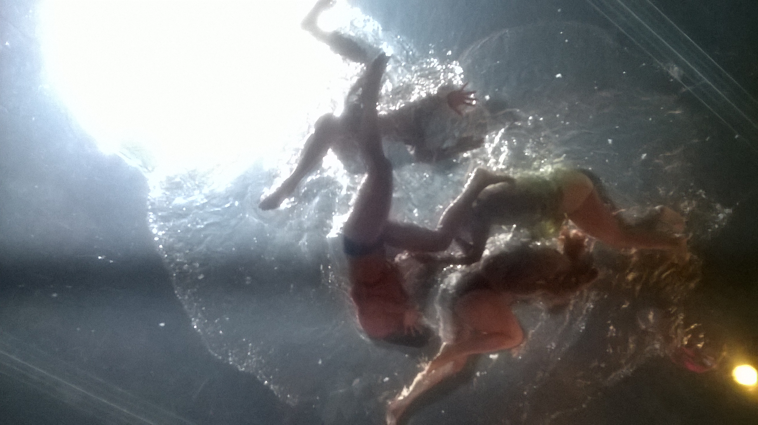 I was invited to attend Fuerzabruta: Warya, expecting a whole new iteration of Fuerzabruta. And although there are new set pieces and sensations added to this version in 2014, at least half the show is the Fuerzabruta I experienced in 2007. Fuerzabruta is unlike most theatrical experinces in that the audience stands throughout in a large space, and must move about (as directed by the crew) as various set pieces are moved in and about. Much of the action happens above the audience. Fuerzabruta is also unique in allowing and even encouraging taking cell phone pictures (which as you can see here I did, but only for a few sections, like the water nymphs and wind tunnel man).