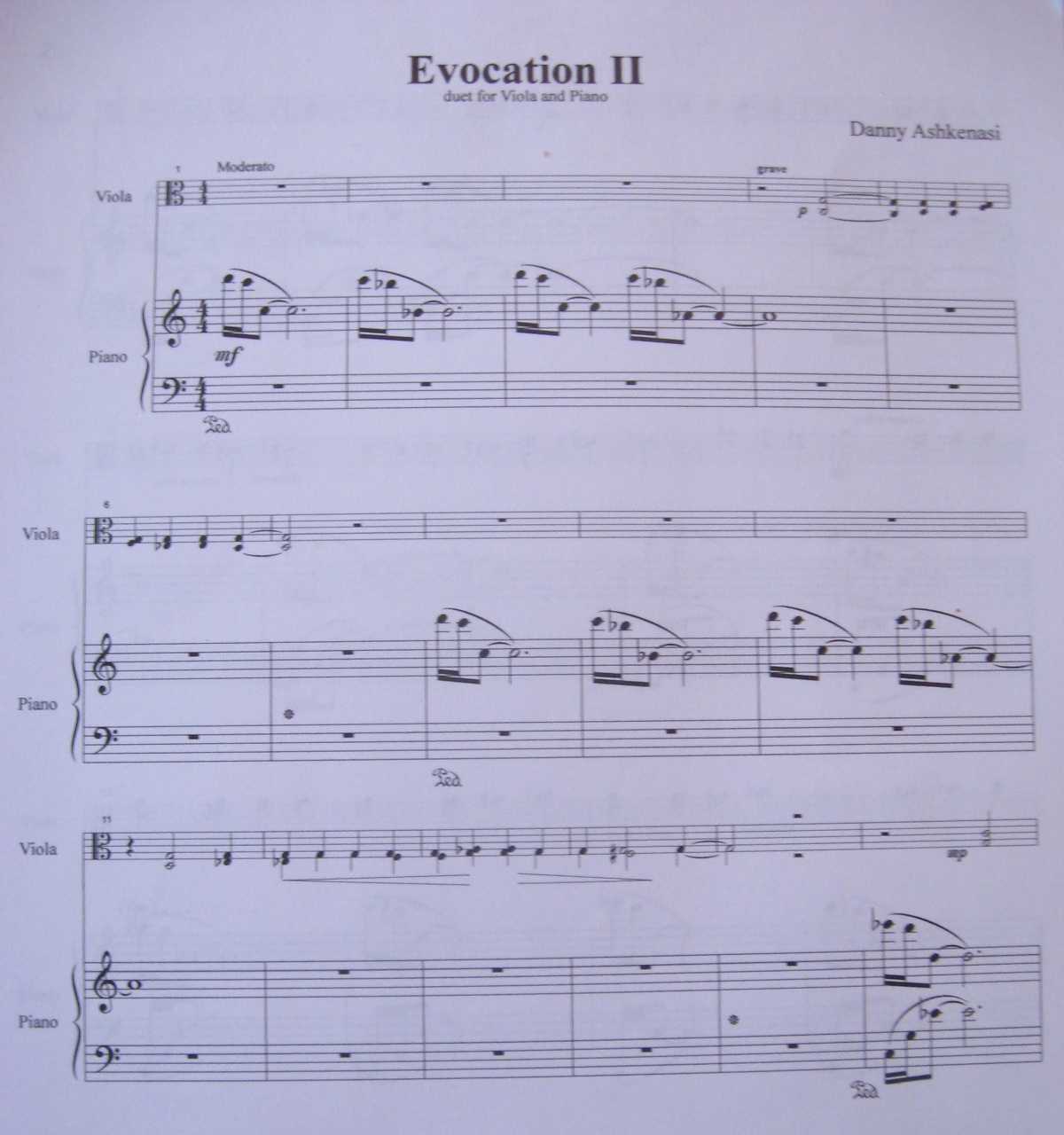 Finally, a caveat about the recording below. As for Evocation 1, it is a computer generated recording. And as such, it captures the essence of Evocation 2 even more imperfectly than the computer recording did for Evocation 1. In fact, by some unfathomable electronic quirk the computer doesn’t even play every written double stop properly (as in measure 14). In addition to the viola double stops, I was experimenting with unusual rolled chords on the piano, with the pedal depressed over lengthy time periods, creating a reverberating grotto or cathedral effect especially noticeable when played on an open concert grand. But the computer doesn’t capture the echoing and complementing reverberations of unmuted piano strings at all. So that crucial effect is lost. And although the computer will faithfully hit every string pitch perfectly (except for those it inexplicably ignores), it doesn’t do so with any variation of timbre or feeling. Really there is no emotion at all. As Ed says, “the computer is consistently tight”. And while Ed may struggle with the dulce on the high strings, one can at least feel and appreciate the emotion in his timid intonation more than in the mechanical, affectless perfection of the computer program. I hesitate including this track, but Ed feels it is good enough to give a fair idea of the piece. Some day we’ll save up enough money to hire two virtuosos to play and record all the Evocations. We’ll have to save up a lot (and ever more with every passing year), as there are already 22 Evocations, and next year there will be 23.