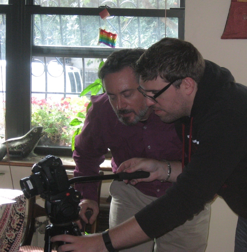 Wednesday we had a mini film crew in the house. Henry Borriello and Stolis Hadjicharalambous (try typing that out real fast) agreed to help us out filming the promo video not required but very much encouraged if you are planning to set up a fundraising campaign on a certain kicky website. And Speakeasy is going to require some serious fundraising to realize the four week large ensemble showcase run next February at the Theater for the New City.