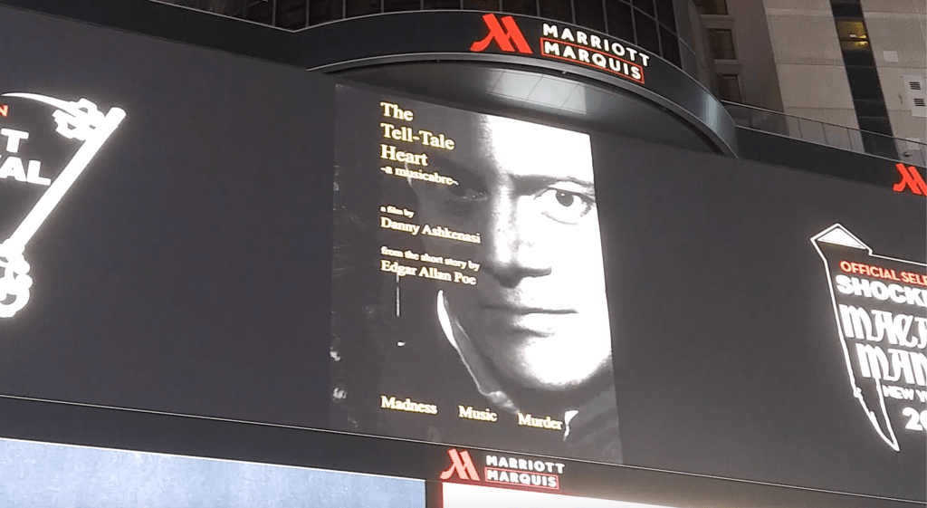 Here is a longer clip of the moment “The Tell-Tale Heart – a musicabre” poster joined the lights of Broadway: