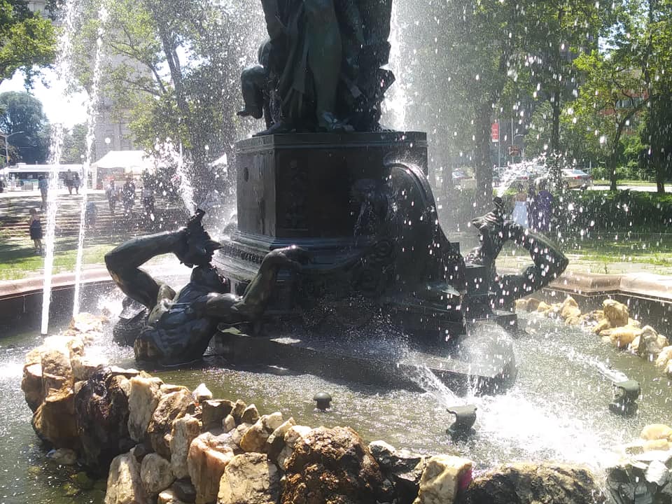 I have already posted pictures of what I called The Lovers of Grand Army Plaza. But those spring pics are few and overcast compared to these sun drenched shots I took over several days this summer. So today I’ll post more from the fountain at Grand Army Plaza, Brooklyn, with the understanding that sometimes more is more.
