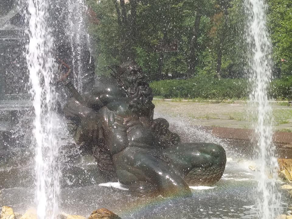 Statues Splashed in Water and Light