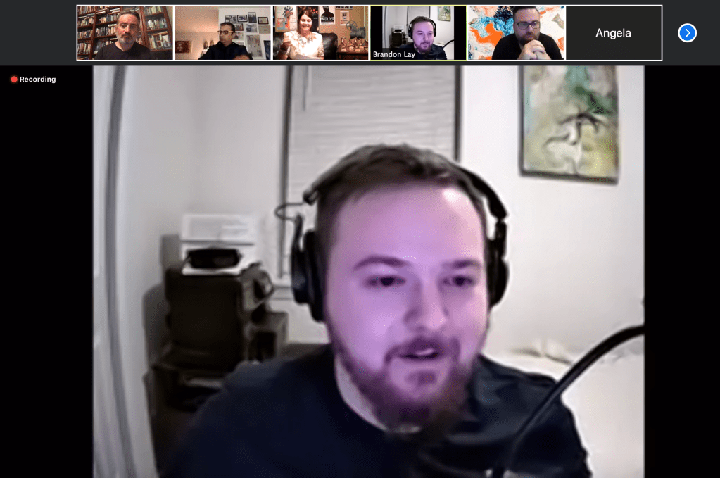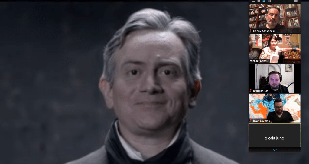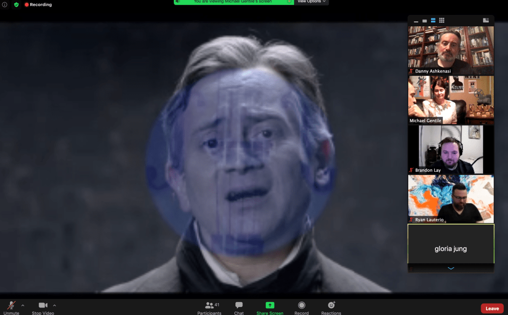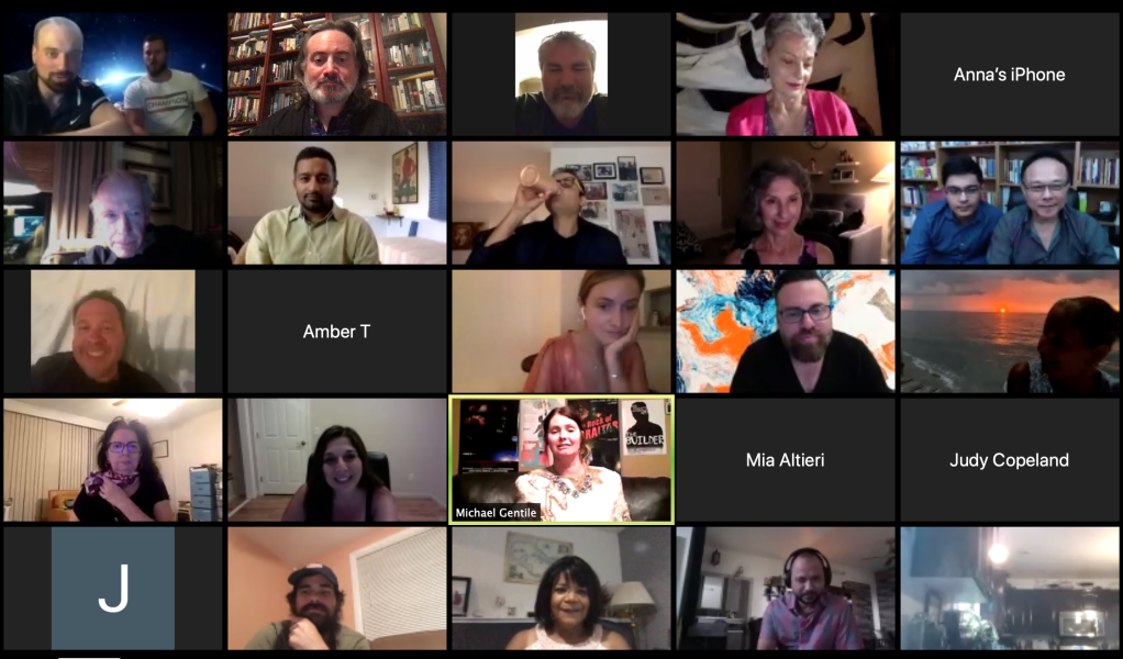 You can see a screenshot of the Tell-Tale trailer above, as well as screenshots of a partial gallery views of the Zoom meeting (there were so many participants, their screens spread over two pages, but the two screengrabs are from the first page at various times during the evening).