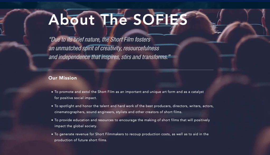 As did the announcement that SOFIE TV will be screening the Short Film Award nominees online November 13 – 20.