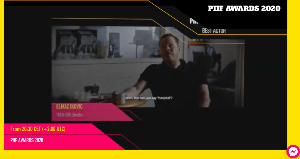 The folks at PIIF asked each nominee to send them a thank you video to play at the ceremony, should they win. Many but not everyone did, I could tell from watching the wins in other categories. I don’t know if Elmaz Ikovic did, because just after they announced his name, the livestream recording cut out for me. Talk about dramatic timing!