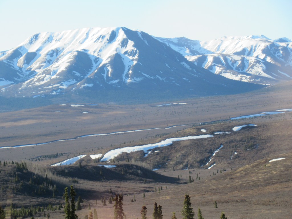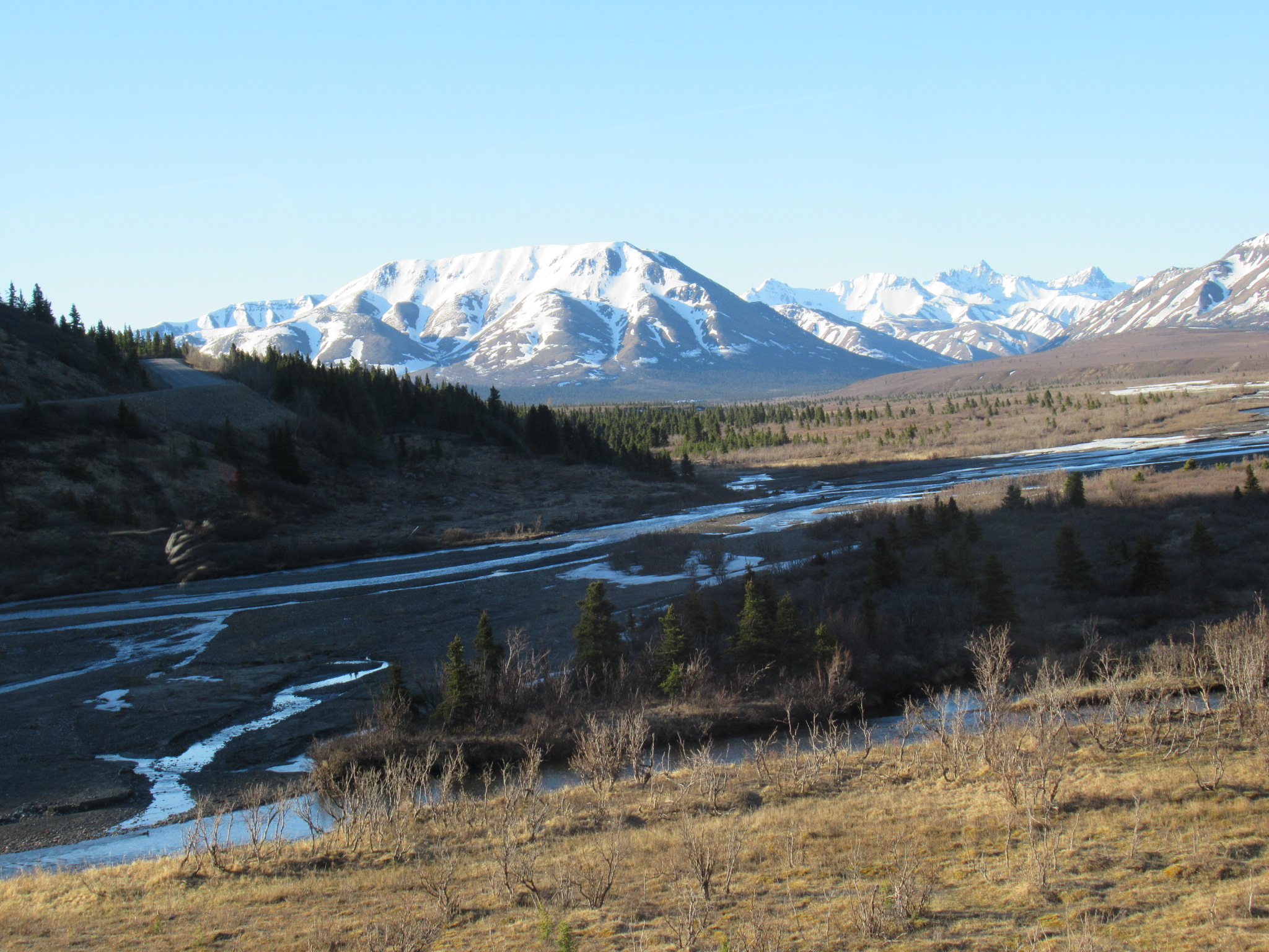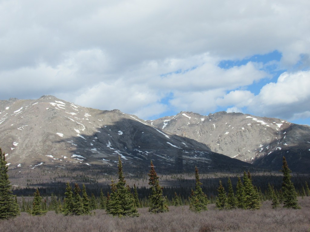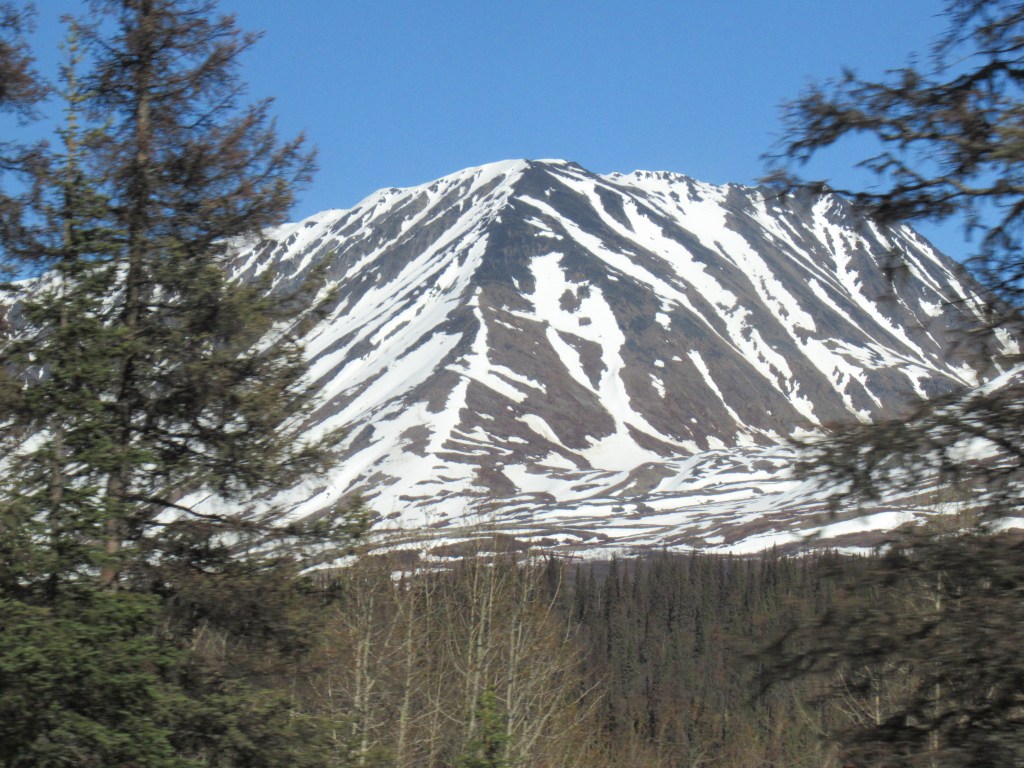 Late May many of the mountains on the way to Denali look like Rorschach tests.