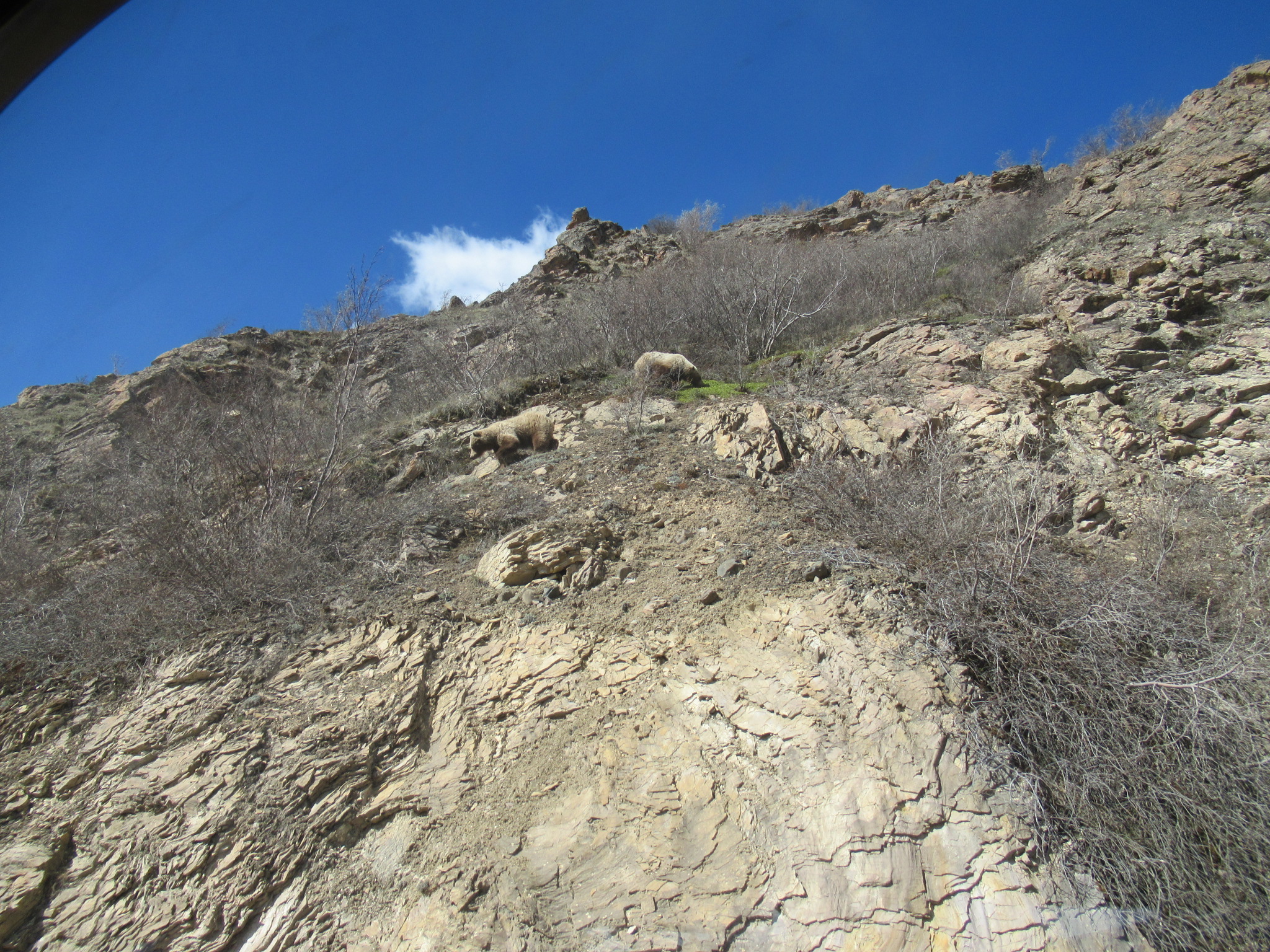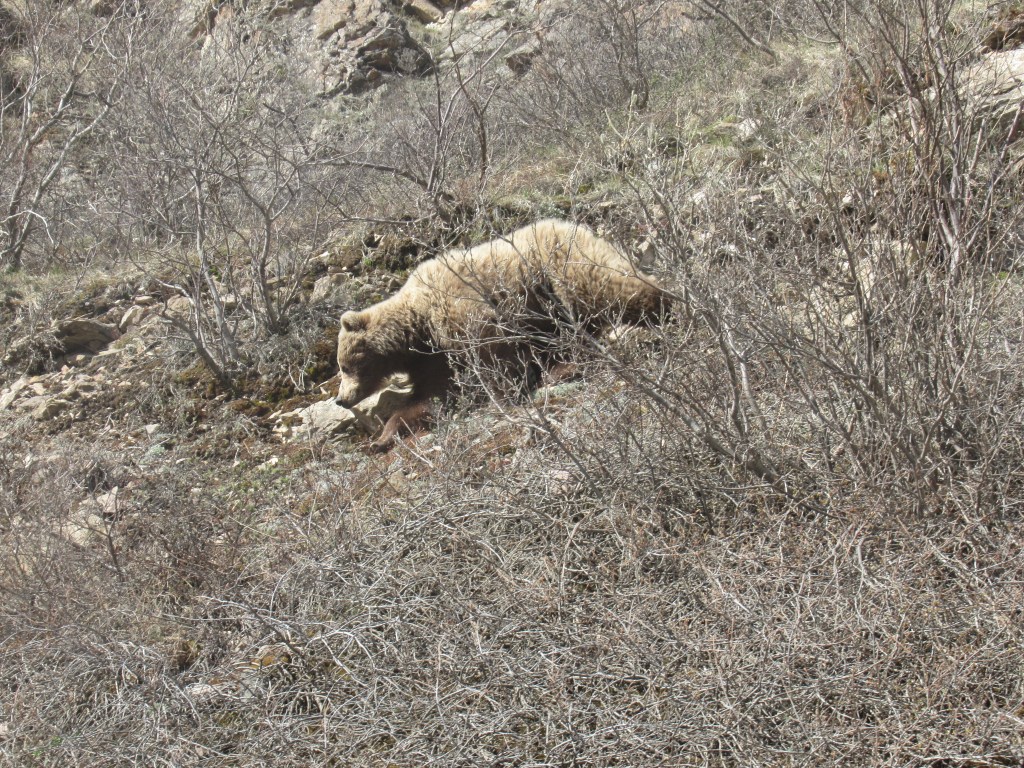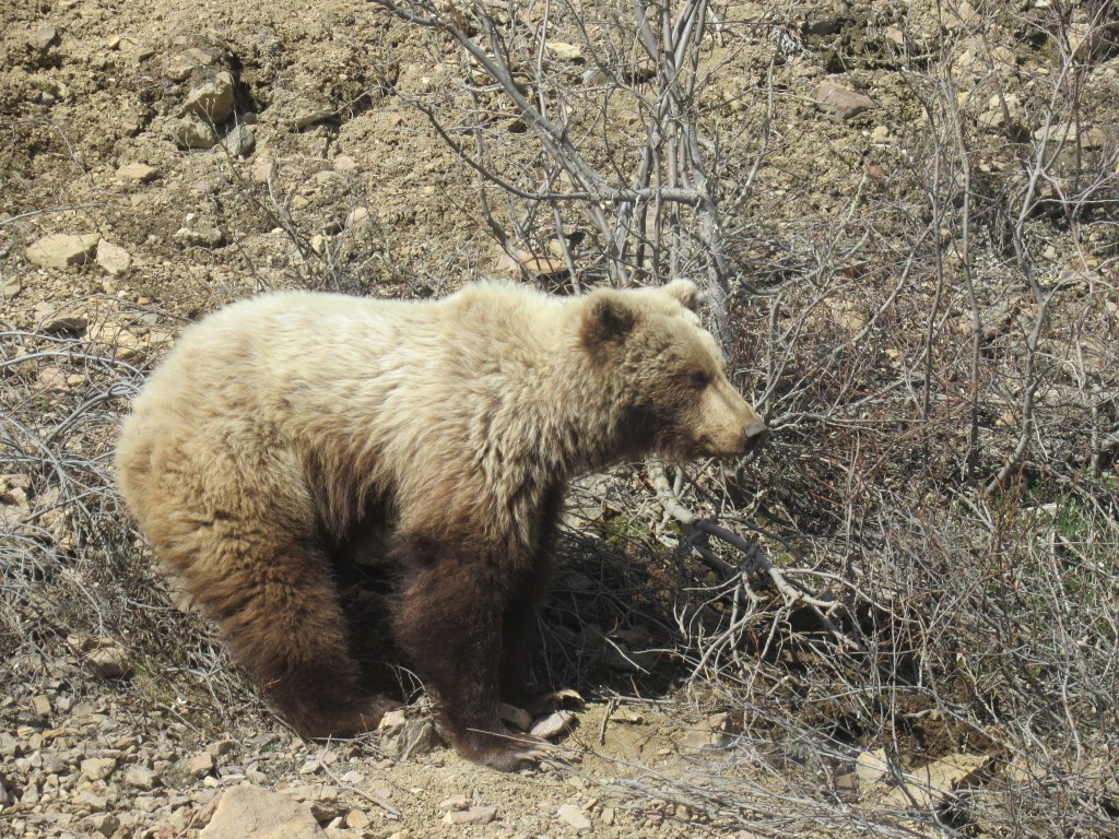 Just when I was thinking, while on our way back to the bus depot: well, we saw moose, and caribou, and Dall sheep, but it looks like we won’t see bears…
