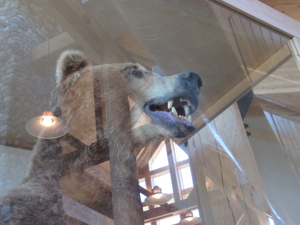 The hotel in Talkeetna where we caught the above view of Denali boasts this big grizzly.