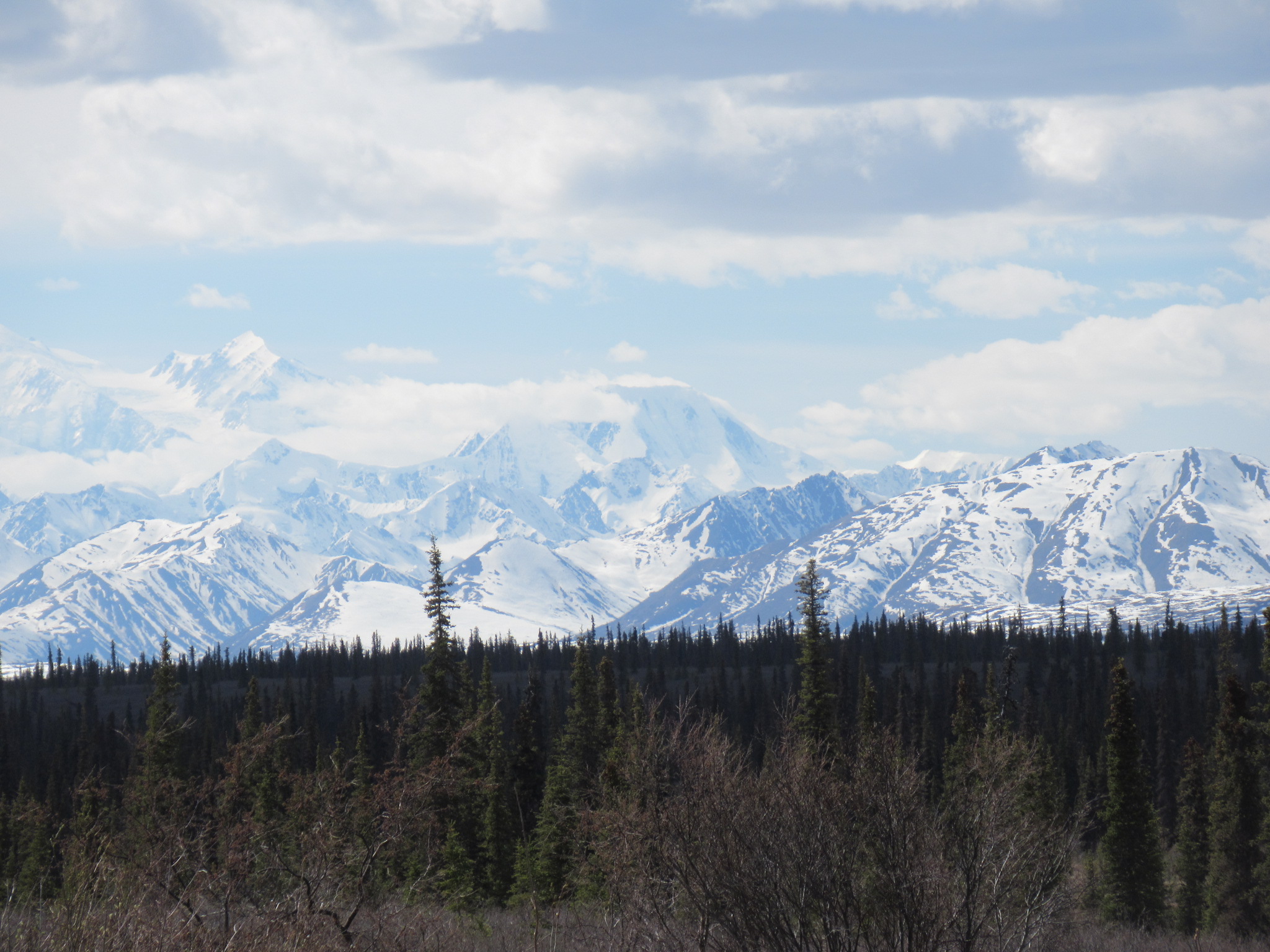 On the drive back south, we got another look of Denali, this time with some afternoon cloud coverage beginning to veil the more-often-than-not obscured mountain.