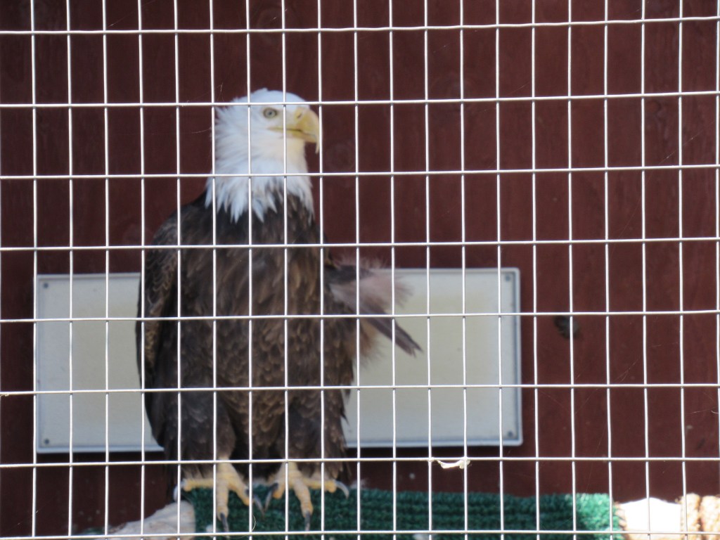 This bald eagle had lost his left wing after being shot (which is illegal, of course) and now it resides at the center.