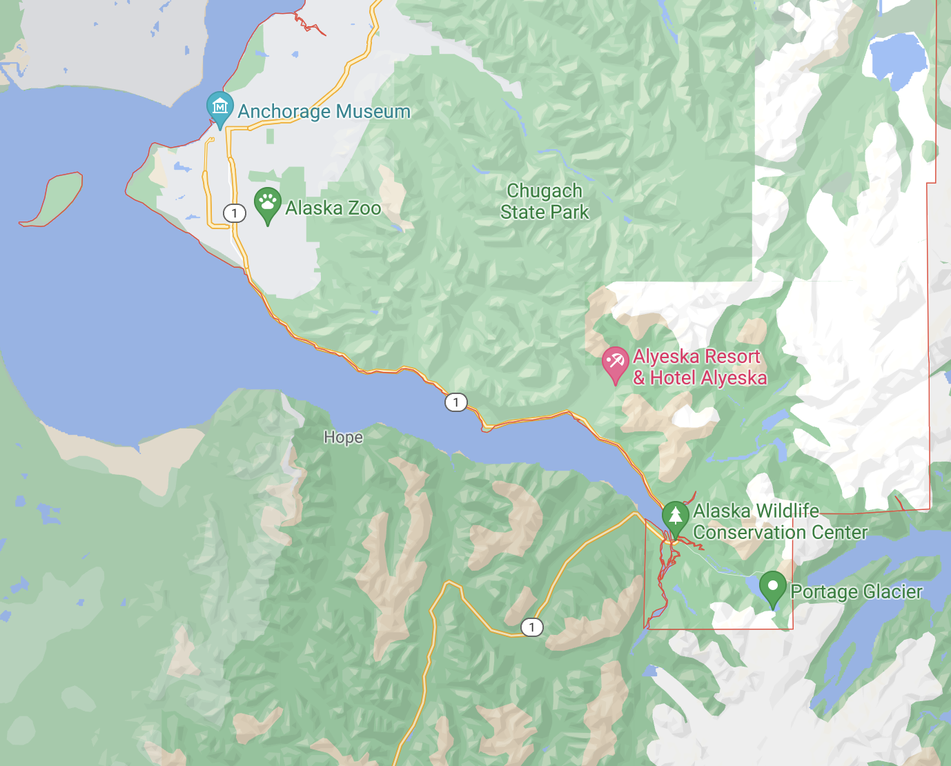Here are two maps to orient you to Turnagain Arm’s location just south of Anchorage.