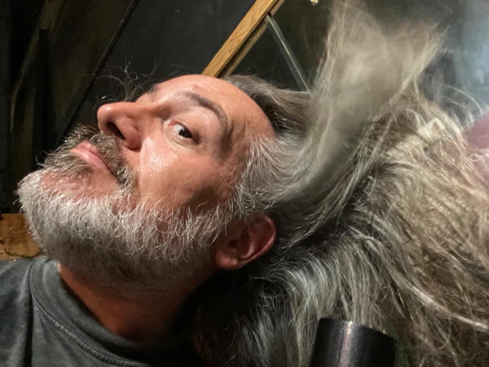 I got the closest hair cut of my life July 2019, and have let those follicles grow ever since, and when I realized that I would be going from long hair to bald for the sake on my new film “The Pit and the pendulum – a musicabre“, I knew I would just let it keep growing until we were in production. The longer the hair the greater the contrast to the bald version of me, and that would suit the film.