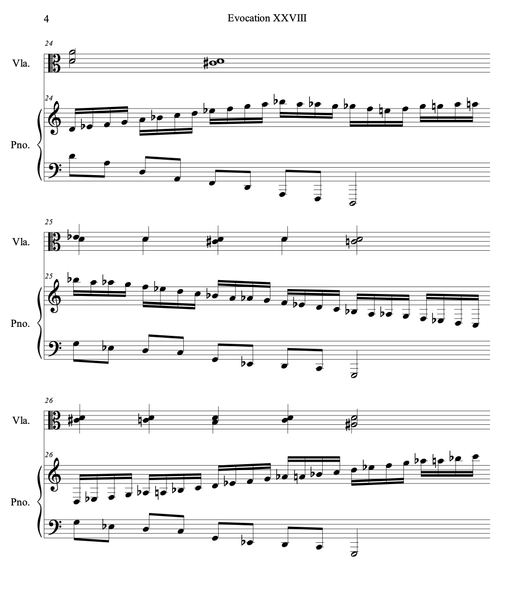 Below is audio of Evocation XXVIII as played by the computer. All the notes can be heard, and the quality is pretty good, considering it is computer tones… but as always with the computer, that human touch is lacking.