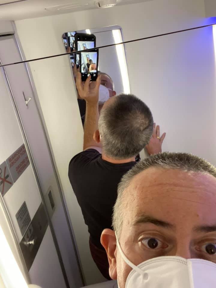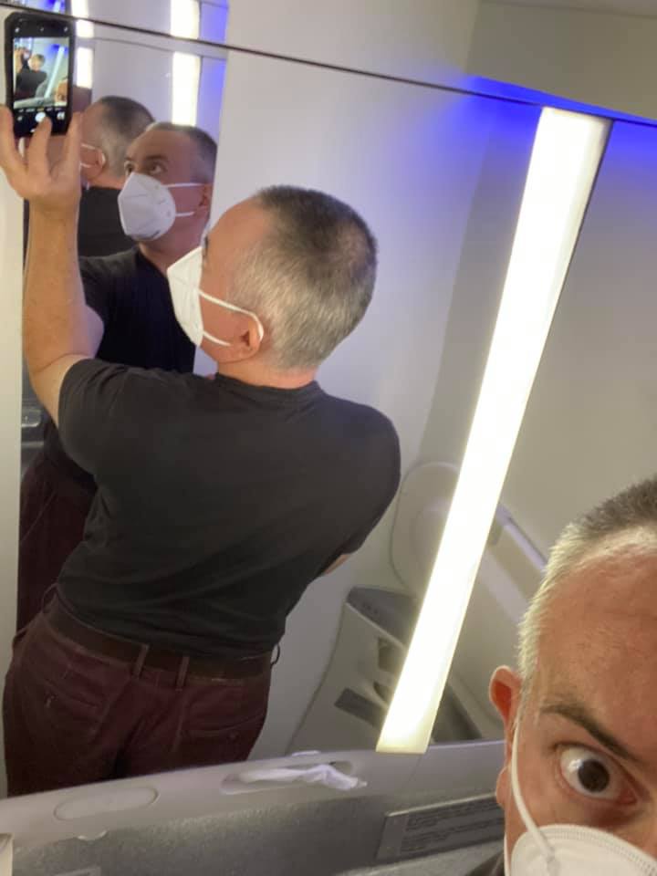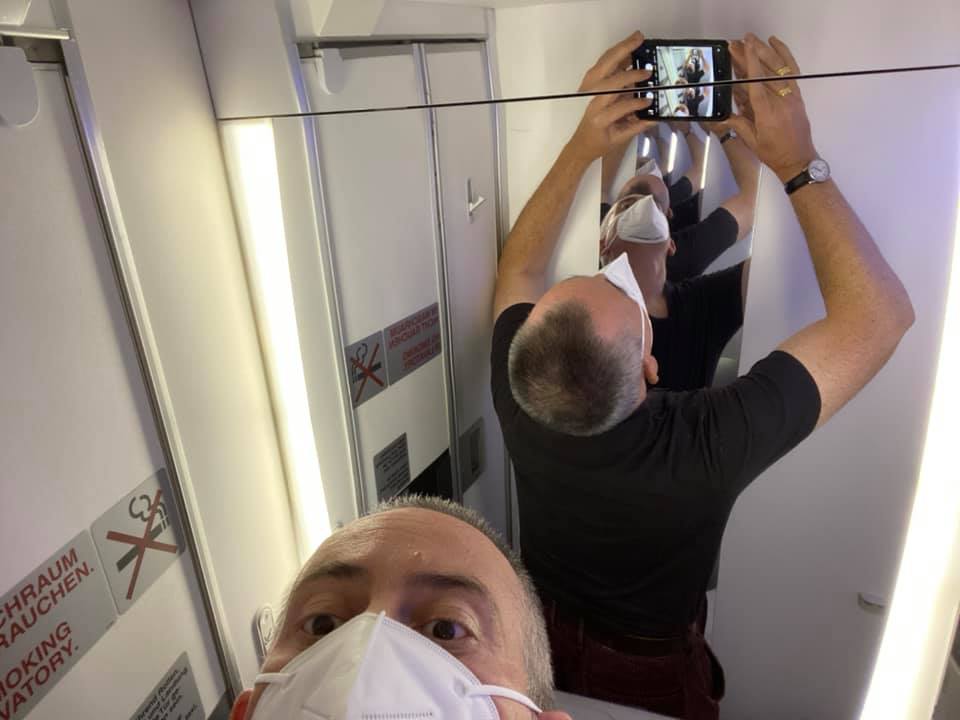 On a recent overseas flight, I found the airplane’s bathroom as tiny as such facilities usually are, but this one also had small mirrors facing each other, allowing for repeating images.