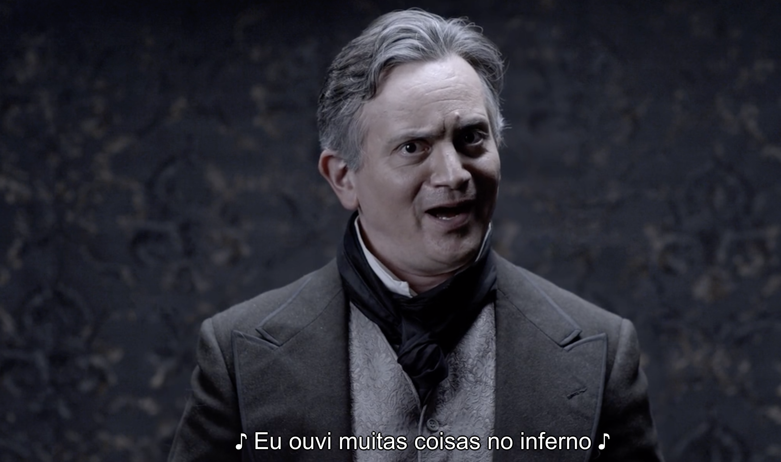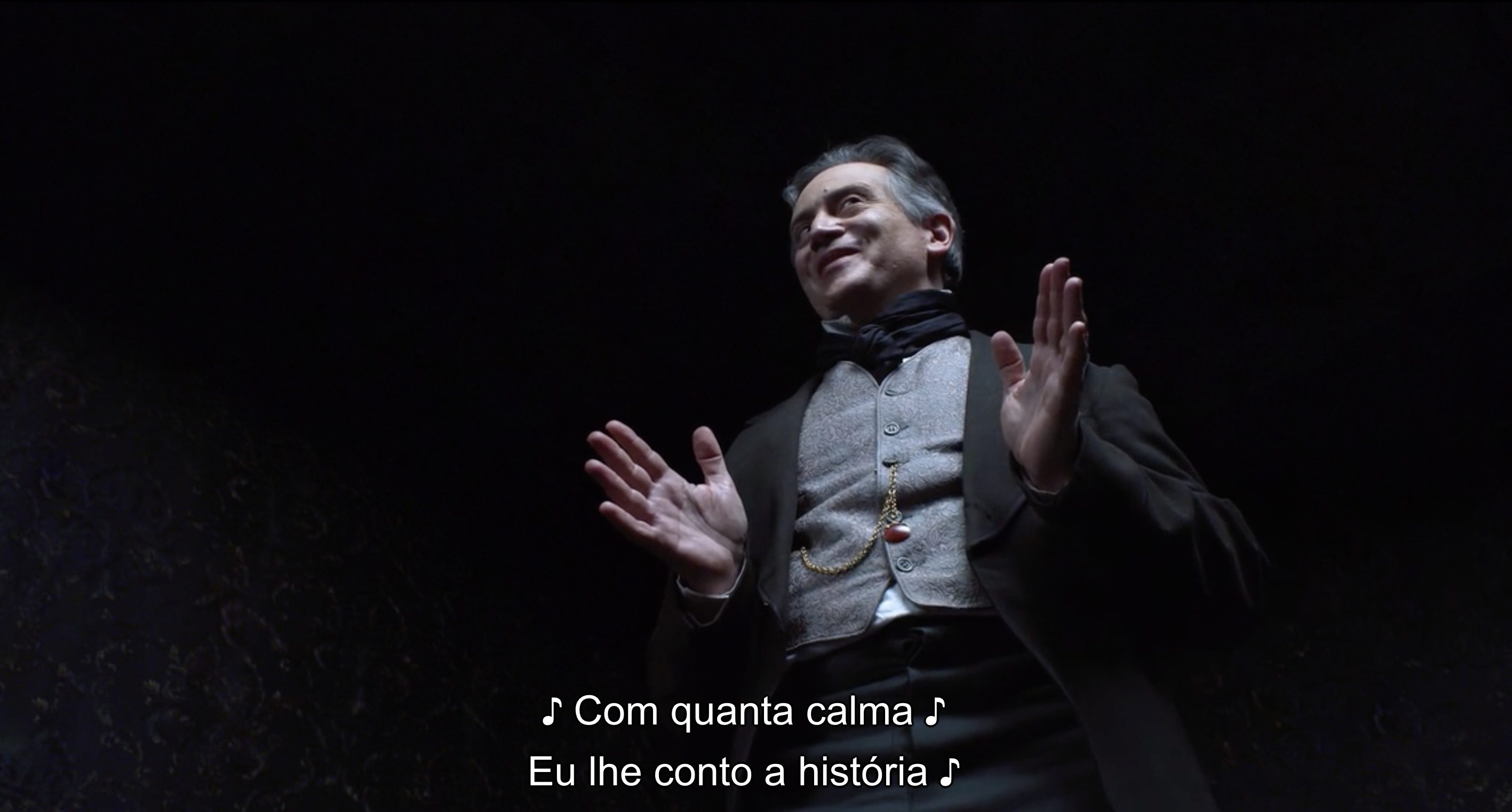 And I thought it might be fun to share some screen shots of my film with these languages’ subtitles included. Without translating them. See if you can guess what is being said based on either having already seen the film or knowing the original Poe text, performed almost word for word in the film, or what you know of the language.