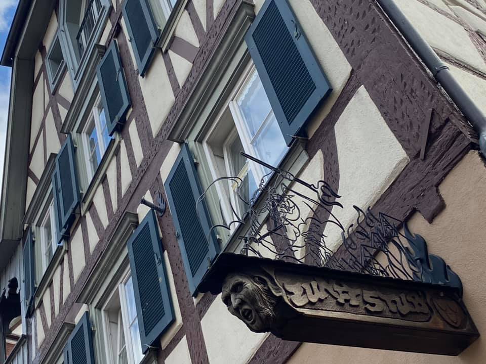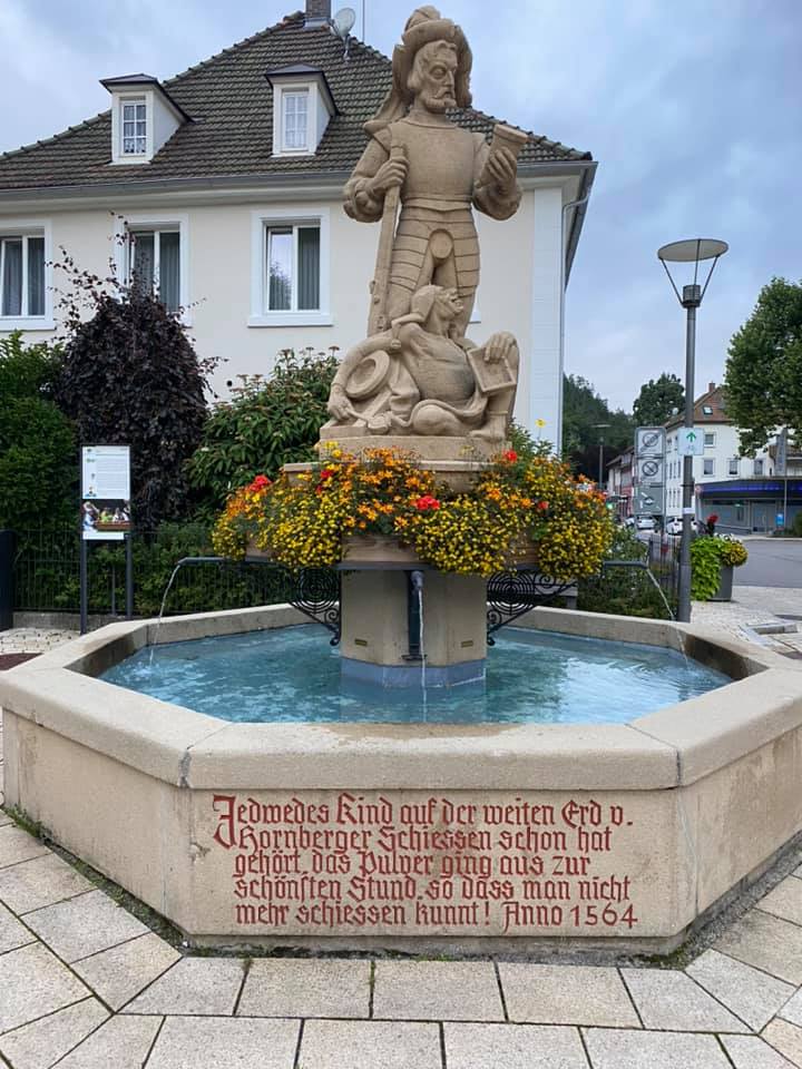 This inscription refers to an evidently true event that happened in Hornberg in 1564. The regional lord was scheduled to visit, and the local townsfolk arranged to shoot cannons in his honor upon his arrival. While they waited for him they drank lots of beer, and kept shooting cannons at the arrival of other travelers they mistook from afar for the lord. By the time the lord did arrive the townsfolk were drop dead drunk and there was no more powder to shoot any cannons. The people of Hornberg have built an amphitheater specifically to enact the Hornberg Shooting Story for tourists. This year, with covid and all, the theater remained empty.