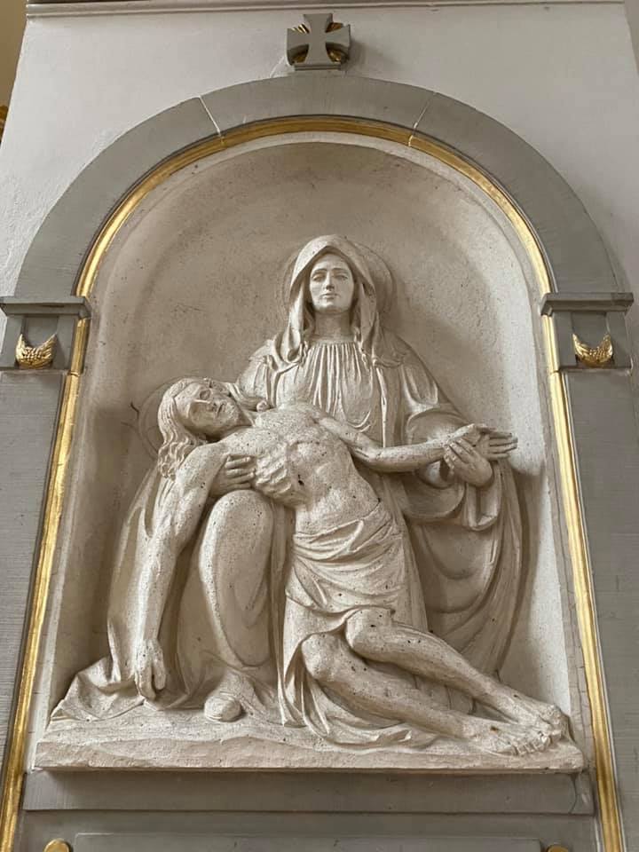The church’s interior, heavily damaged during the Second World War, was mostly remodeled in the 1980s.