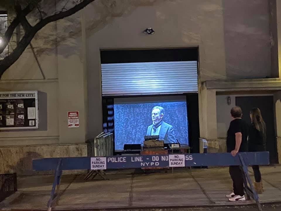 We tested out the screen and sound projection tonight (see the pictures below), and it should be a fun, effective and unusual way to experience 37 minutes of gothic movie musical madness. It’s not Tell-Tale’s first New York screening, that would be New Filmmaker’s NY’s March 2020 screening, which had been scheduled for the 2nd Avenue Anthology theater but had to be moved on-line because of Covid. Many more festivals local and world-wide screened “The Tell-Tale Heart – a musicabre”, most on-line, or if not on-line, unreachable for me do to travel restrictions. In fact, thanks to Covid’s long reach, this will be the first time Tell-Tale will screen in a physical space in Manhattan, and only the fourth time I will get to experience an in-person screening. It being an outdoor presentation will make it extra safe in a city with very high vaccination rates. It being Halloween night in the East Village however should make it an extra freaky fun viewing experience. I’m excited about it and hope you will join us.