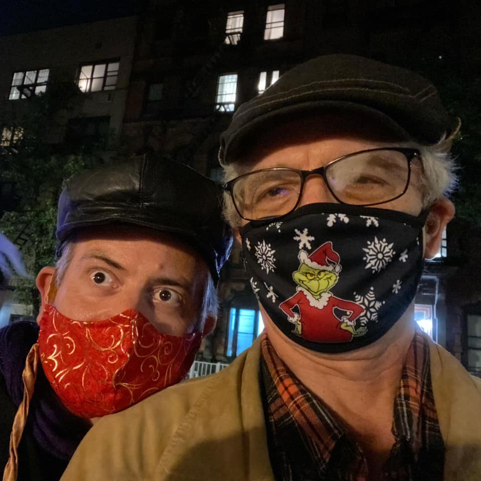 UPDATE 10/31: Here are some pics from tonight’s screening, starting with Ed and me in our Halloween masks. The crowd grew as more and pedestrians were attracted by the sights and sounds of the screening. The response at the end was very enthusiastic.