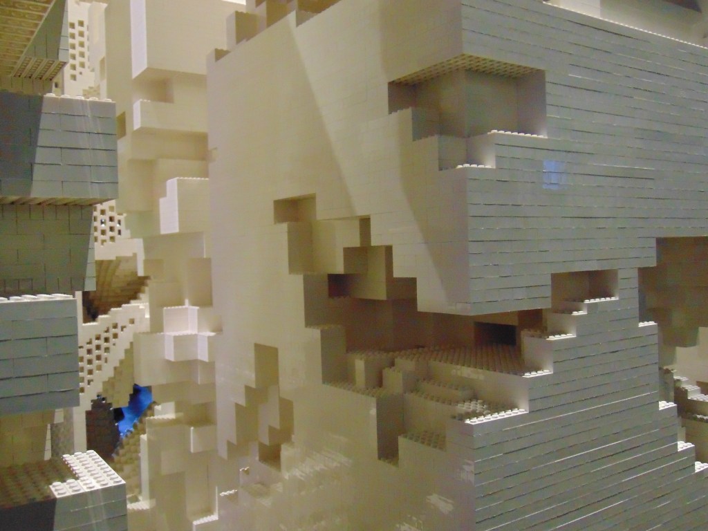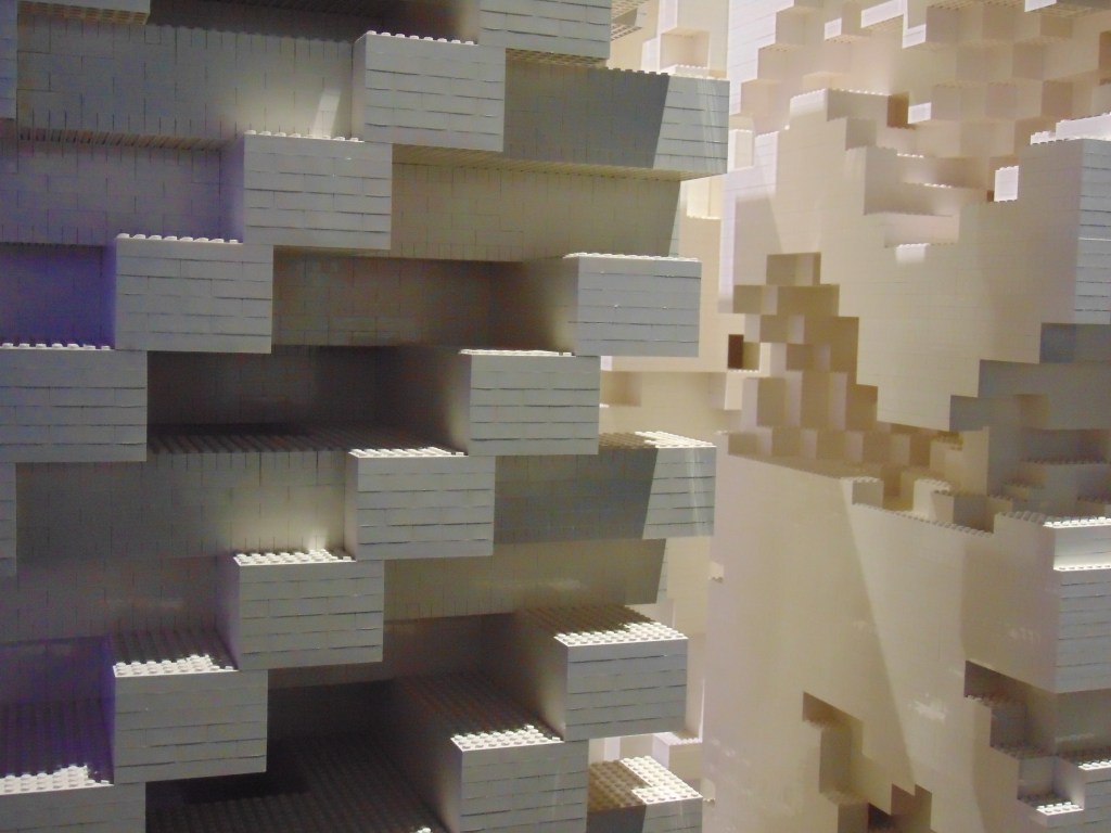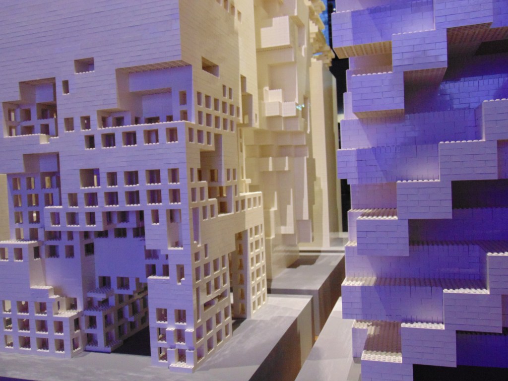 I saw these nine gigantic towers of white lego building blocks in the Pompidou museum in Paris in 2018. They reminded me of science fiction movies of my childhood where fantastical models would be filmed to look like immense futuristic cityscapes. I took a wide focus measure of these nine towers, part of a series called Porocity, built in 2012 by The Why Factory, a collaboration of the Delft University of Technology with the MVRVD agency. Then I zoomed in, pretending to be some flying vehicle out of Logan’s Run or Blade Runner soaring in and out of the fantasy skyscrapers.