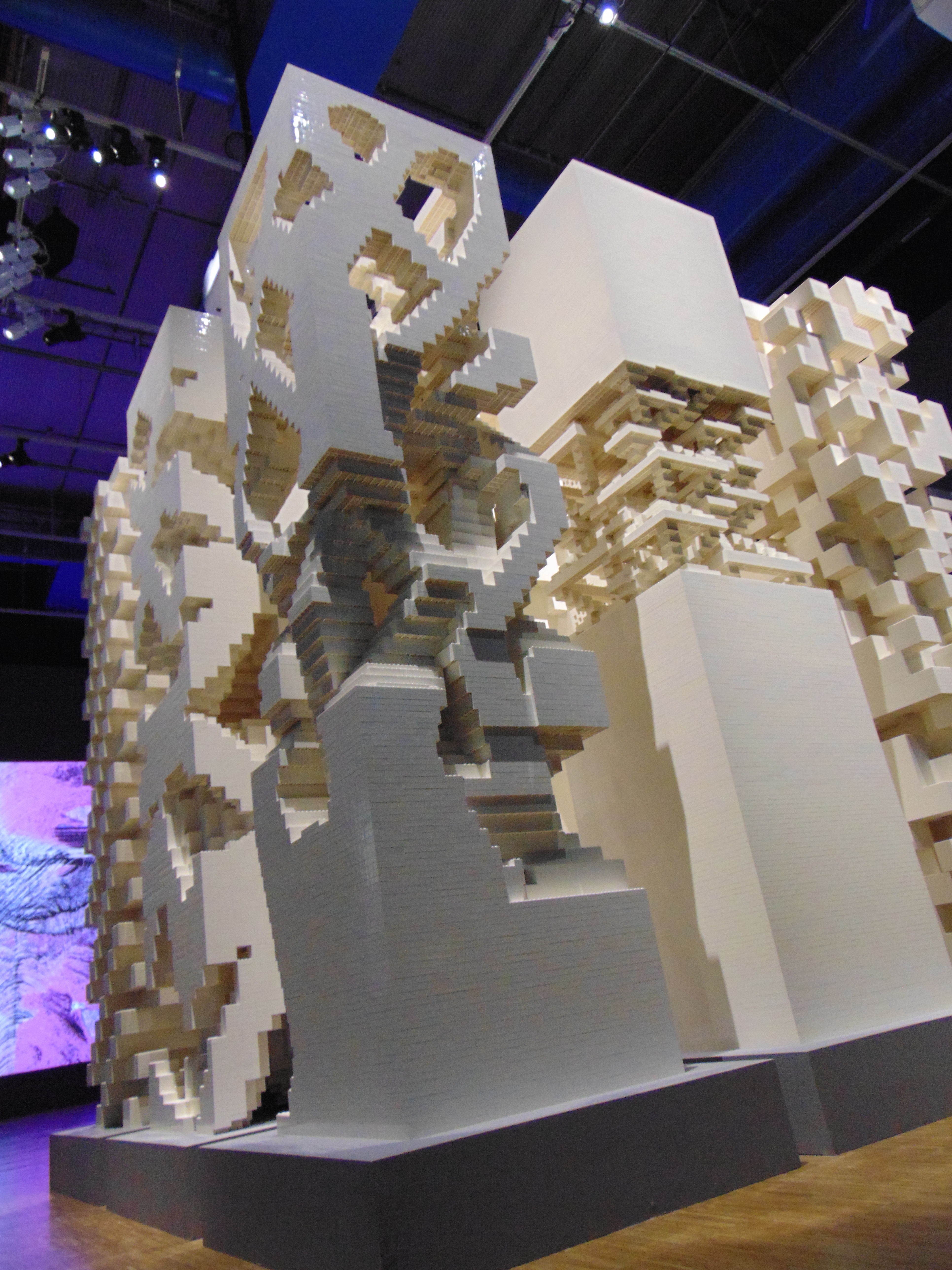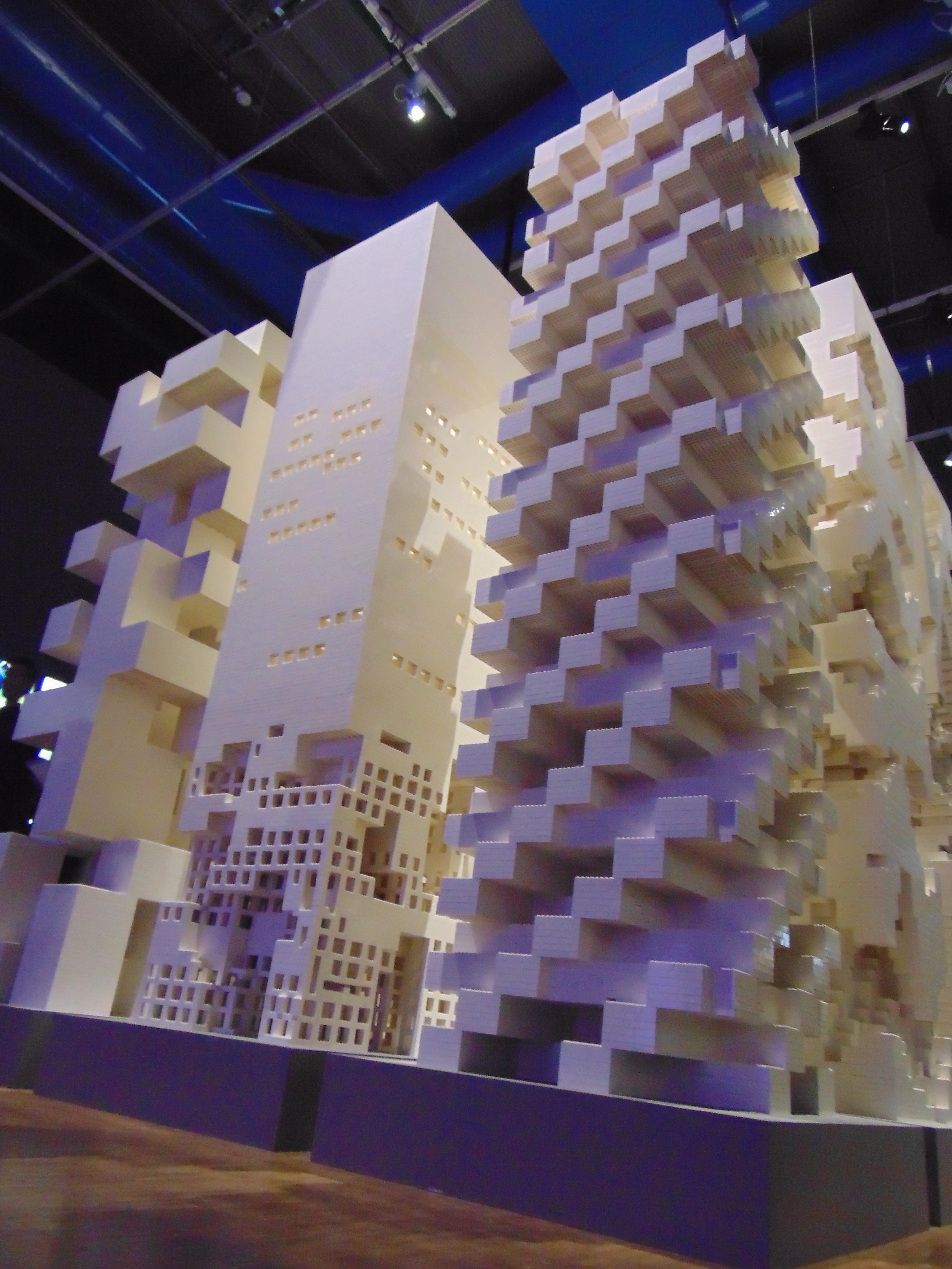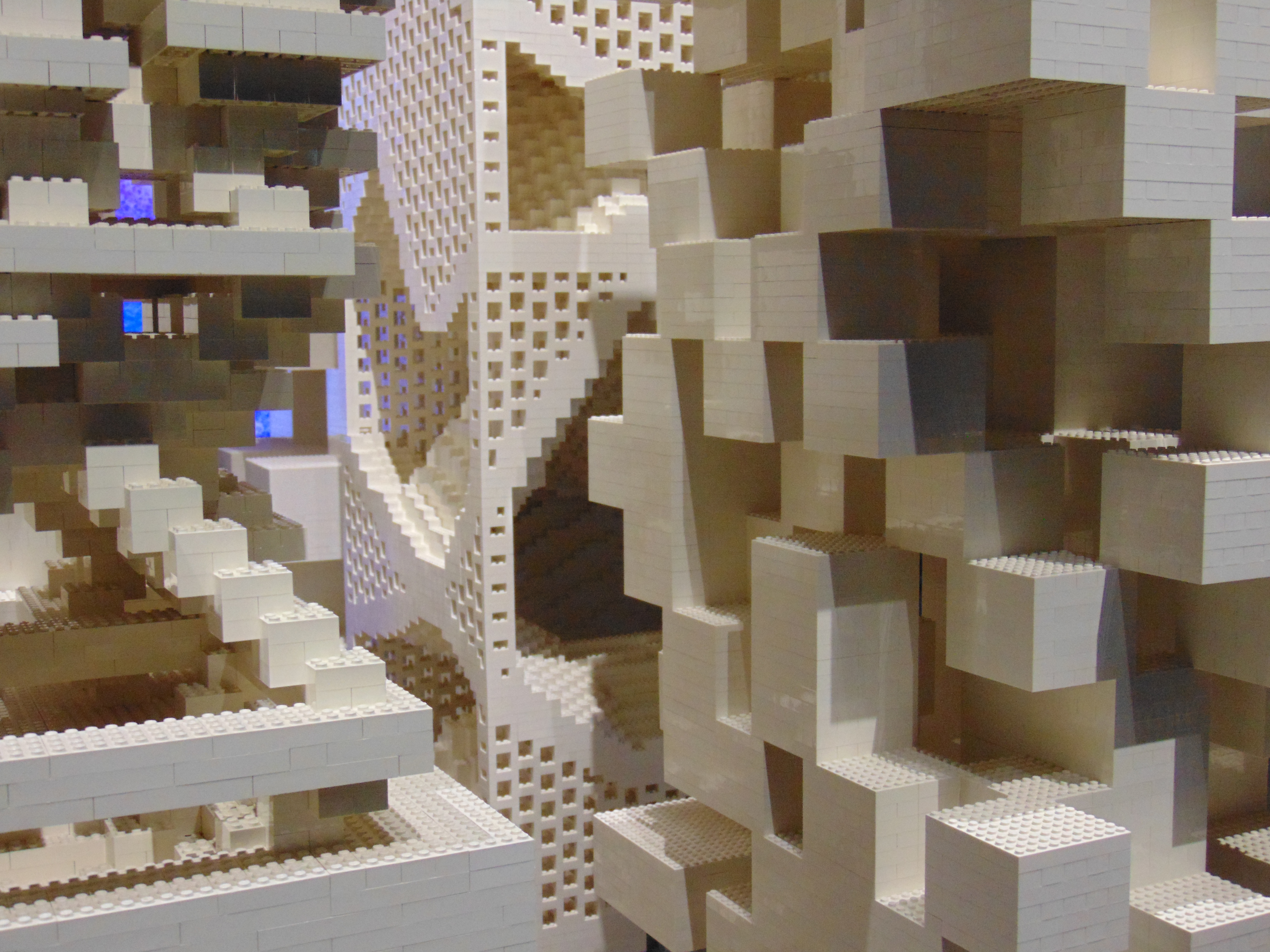 I saw these nine gigantic towers of white lego building blocks in the Pompidou museum in Paris in 2018. They reminded me of science fiction movies of my childhood where fantastical models would be filmed to look like immense futuristic cityscapes. I took a wide focus measure of these nine towers, part of a series called Porocity, built in 2012 by The Why Factory, a collaboration of the Delft University of Technology with the MVRVD agency. Then I zoomed in, pretending to be some flying vehicle out of Logan’s Run or Blade Runner soaring in and out of the fantasy skyscrapers.