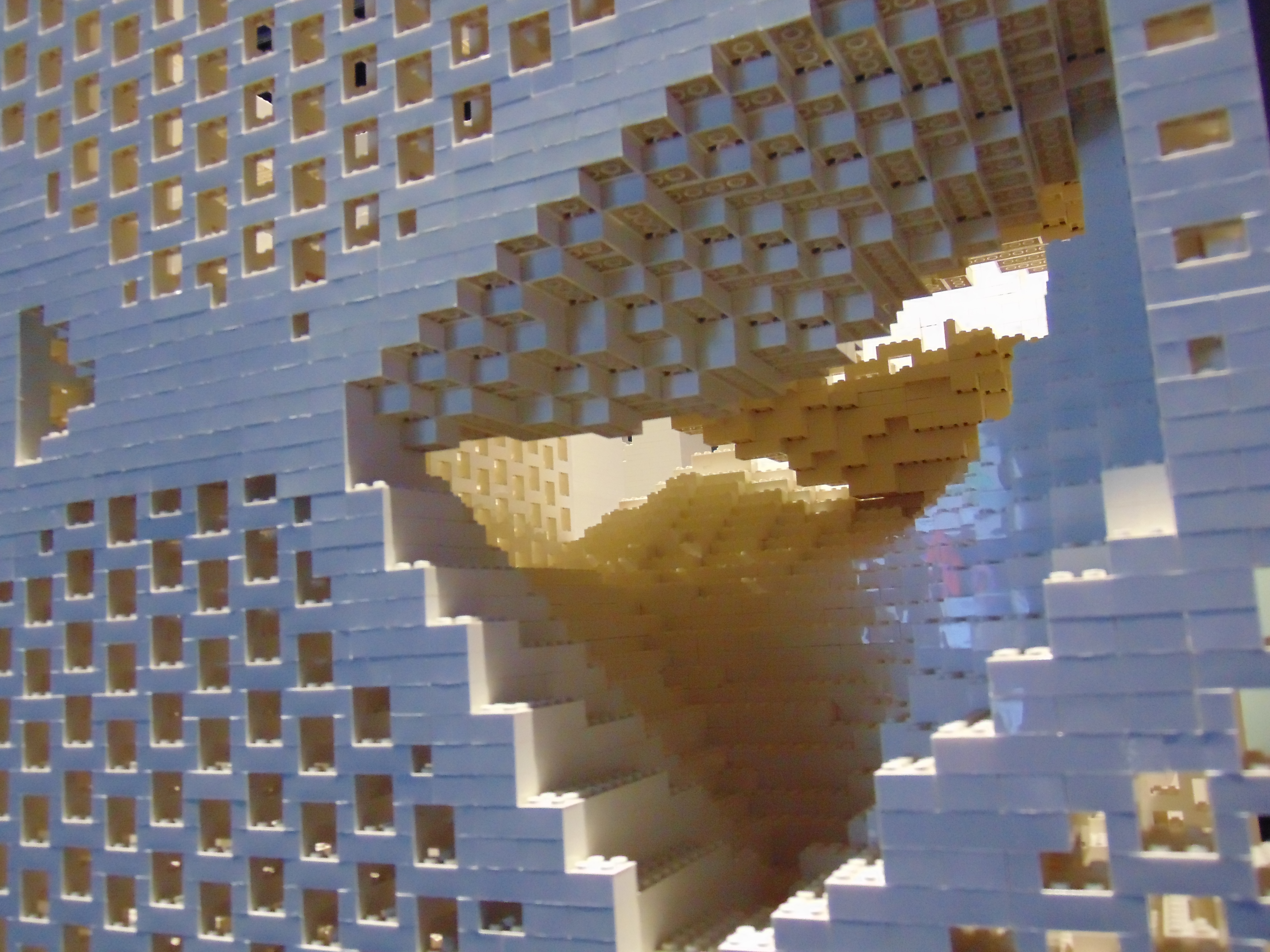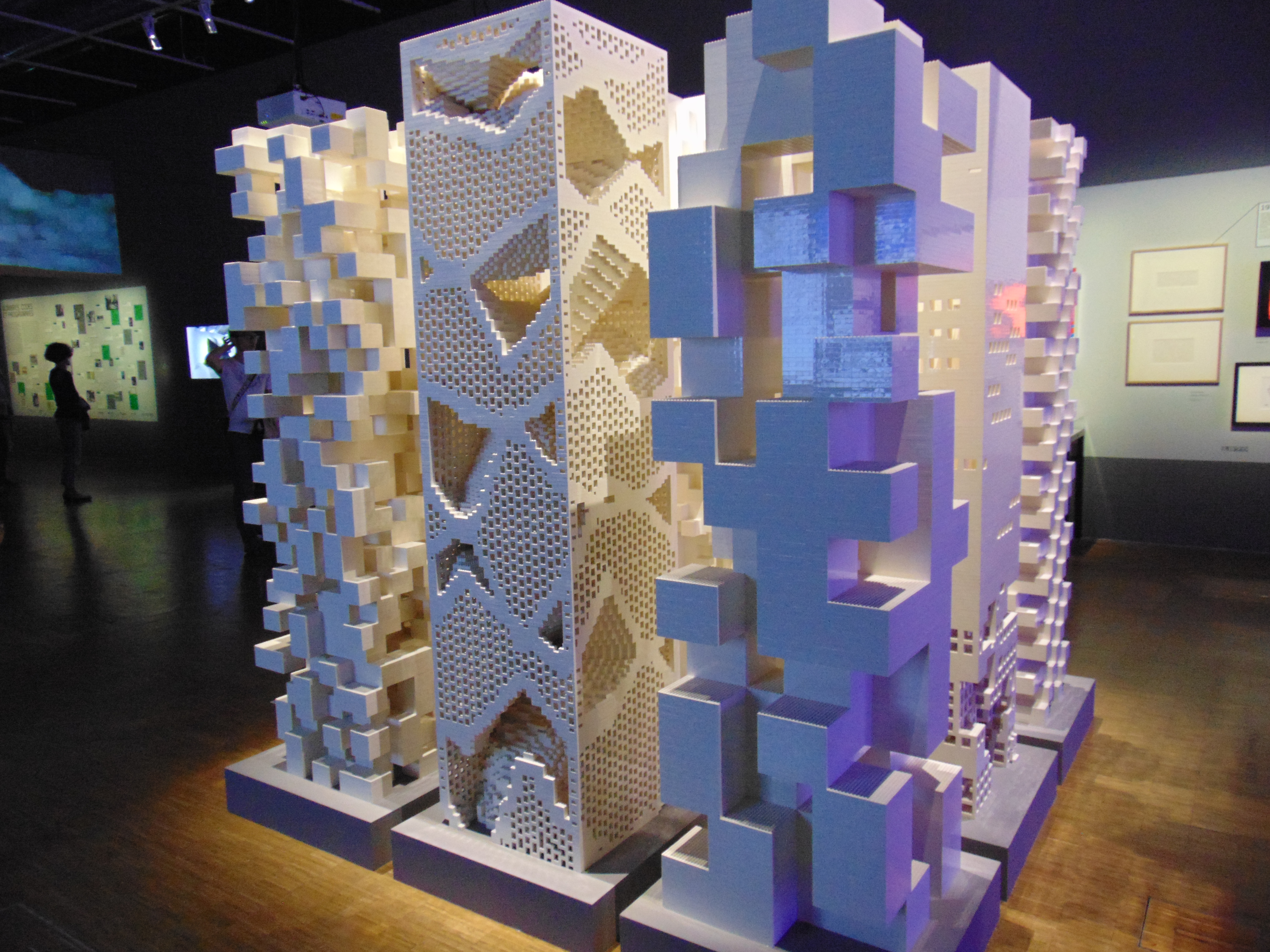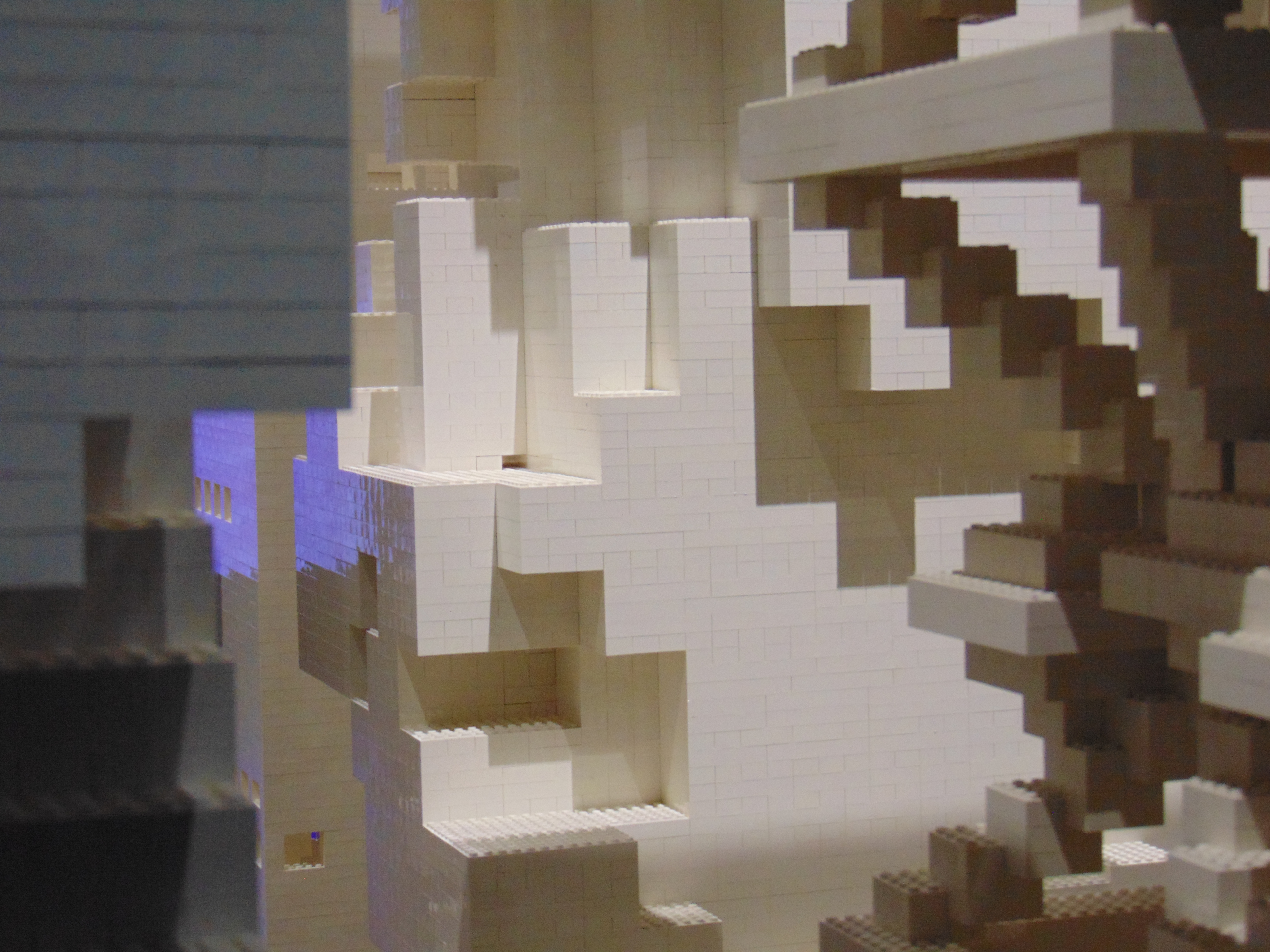 I saw these nine gigantic towers of white lego building blocks in the Pompidou museum in Paris in 2018. They reminded me of science fiction movies of my childhood where fantastical models would be filmed to look like immense futuristic cityscapes. I took a wide focus measure of these nine towers, part of a series called Porocity, built in 2012 by The Why Factory, a collaboration of the Delft University of Technology with the MVRVD agency. Then I zoomed in, pretending to be some flying vehicle out of Logan’s Run or Blade Runner soaring in and out of the fantasy skyscrapers.