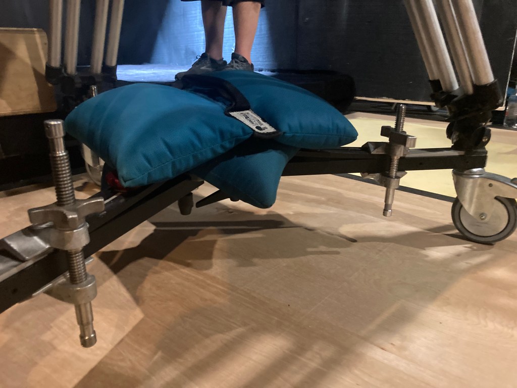 The rental company gave us a porta-jib that was missing a crucial piece. Something called a spreader, which would allow the porta-jib to be moved effectively on wheels. Which was crucial if the camera was going to start diagonally up to the right of the protagonist, and end diagonally up to the left.