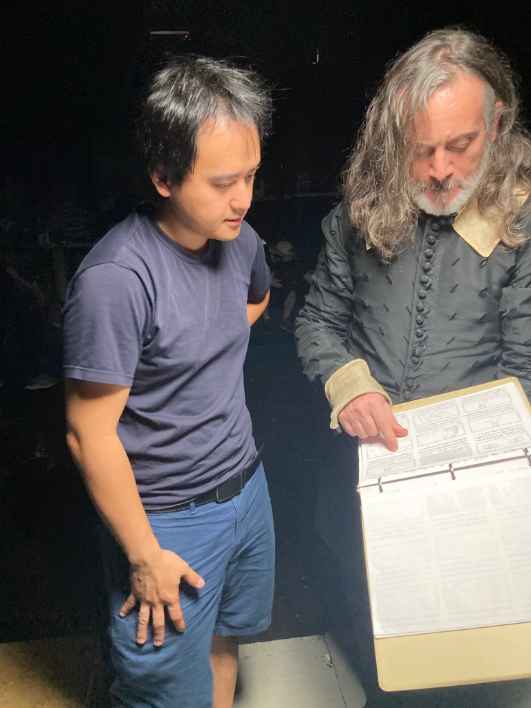 I’ll leave you with this shot of production assistant Peter Laboy on my mark for this shot while the crew is setting up. Note, by comparing this with the first shot at the top of this post, how perfectly he is emulating my body position for the shot.