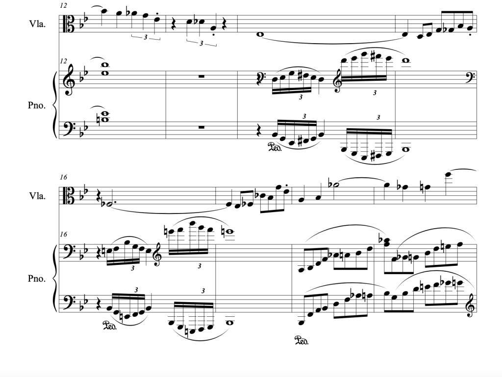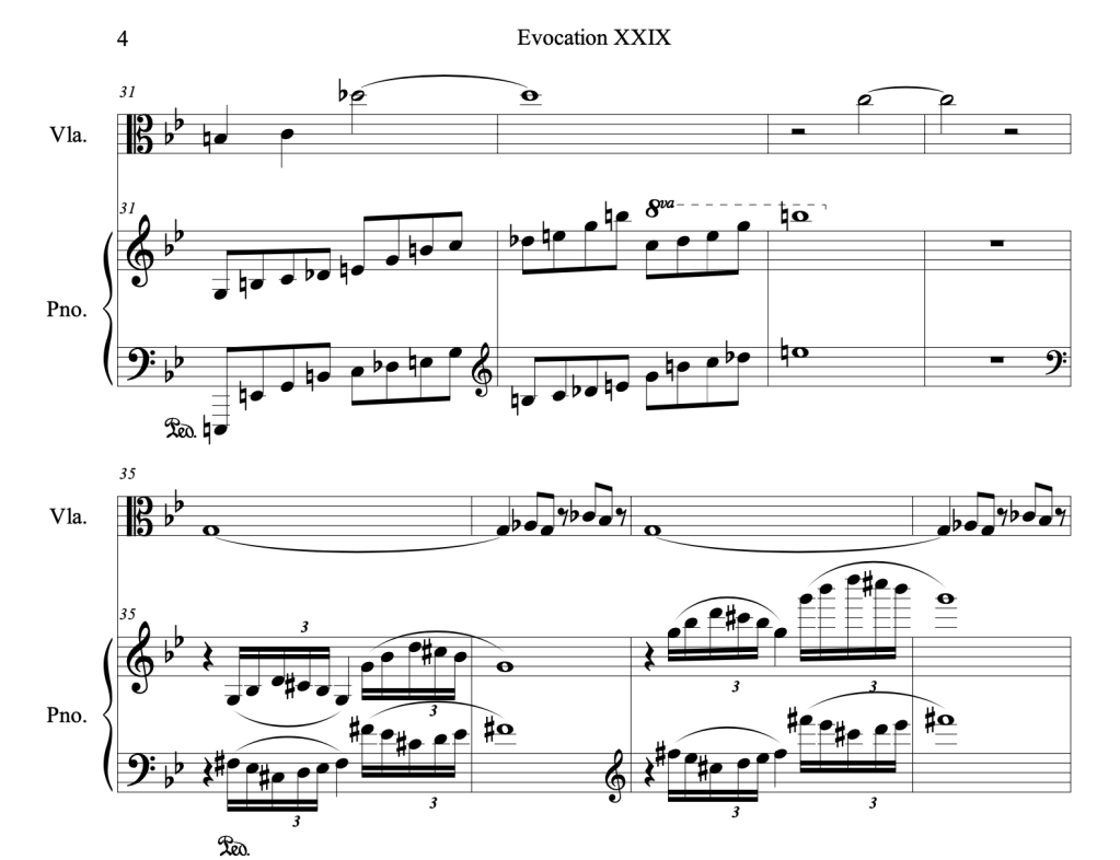 Ed’s birthday is today, and, as every year of the past 29 years that we’ve been together, I compose a viola/piano duet for him on his birthday. He plays viola, I play piano. Each one of these duets is called an Evocation. I’ve shared some of these Evocations before on this blog (as in here and here and here and here and here and here and here). Today I share Evocation XXIX. The four pages of the piano/viola score and a computer rendition of the music. As ever, the computer sounds, well, like a machine, but until Ed and I hire professionals to play the Evocations in a recording studio (donations welcome), this is what I can do for you here.