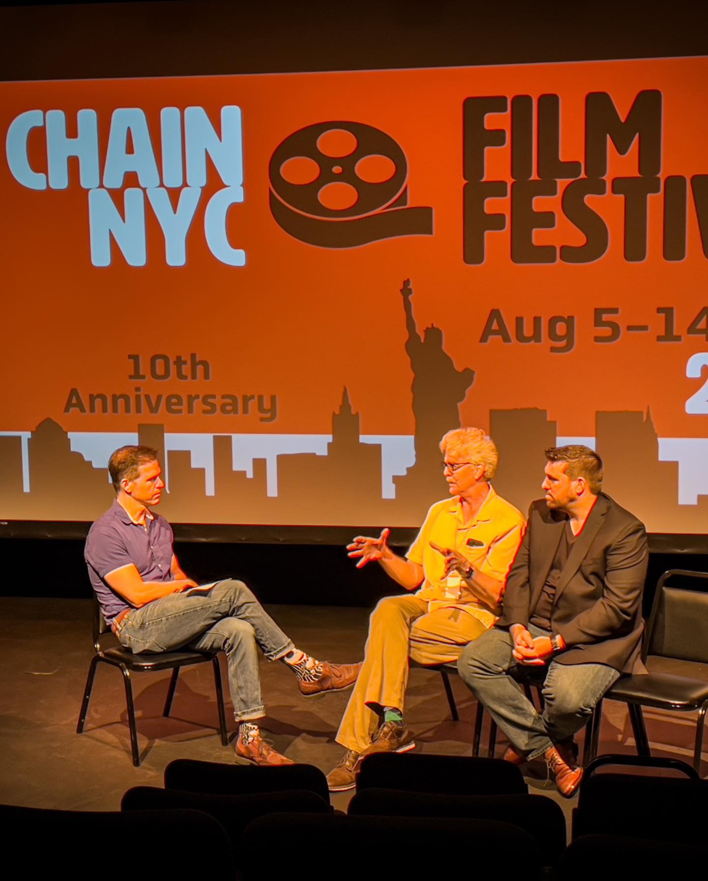 Ed and Stolis doing the Q&A with Chain NYC’s Rick Hamilton. Stolis talked at length about our detailed and meticulous editing process and later reported that the film “played excellent”.