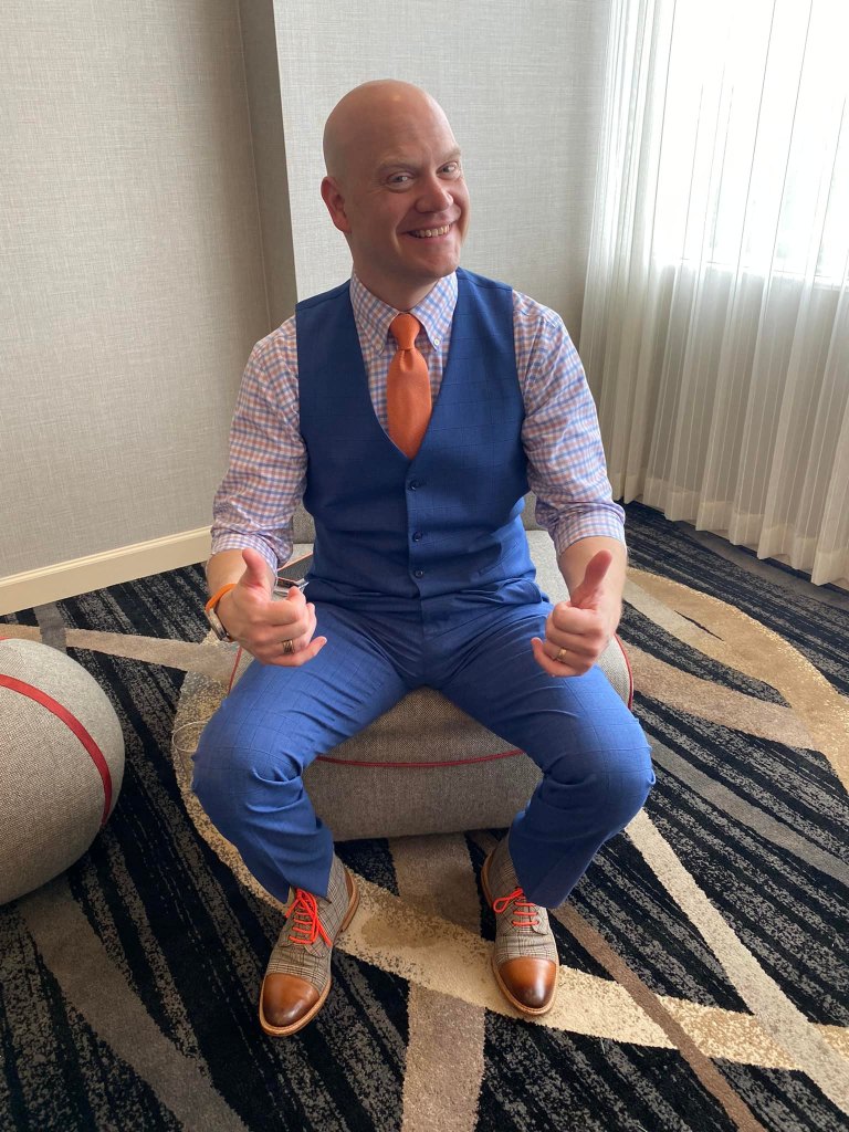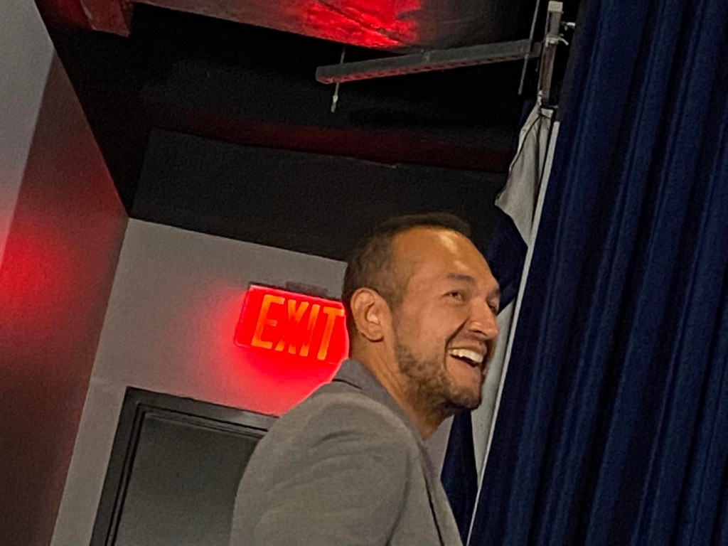Below is Christina, who ably manages the festival even when the hotel elevator breaks down. She is so averse to taking the spotlight that a photo portrait wasn’t possible. I finally suspected the mask was less about Covid than a desire to assiduously avoid being the public face of the festival. Because that would be Ray.