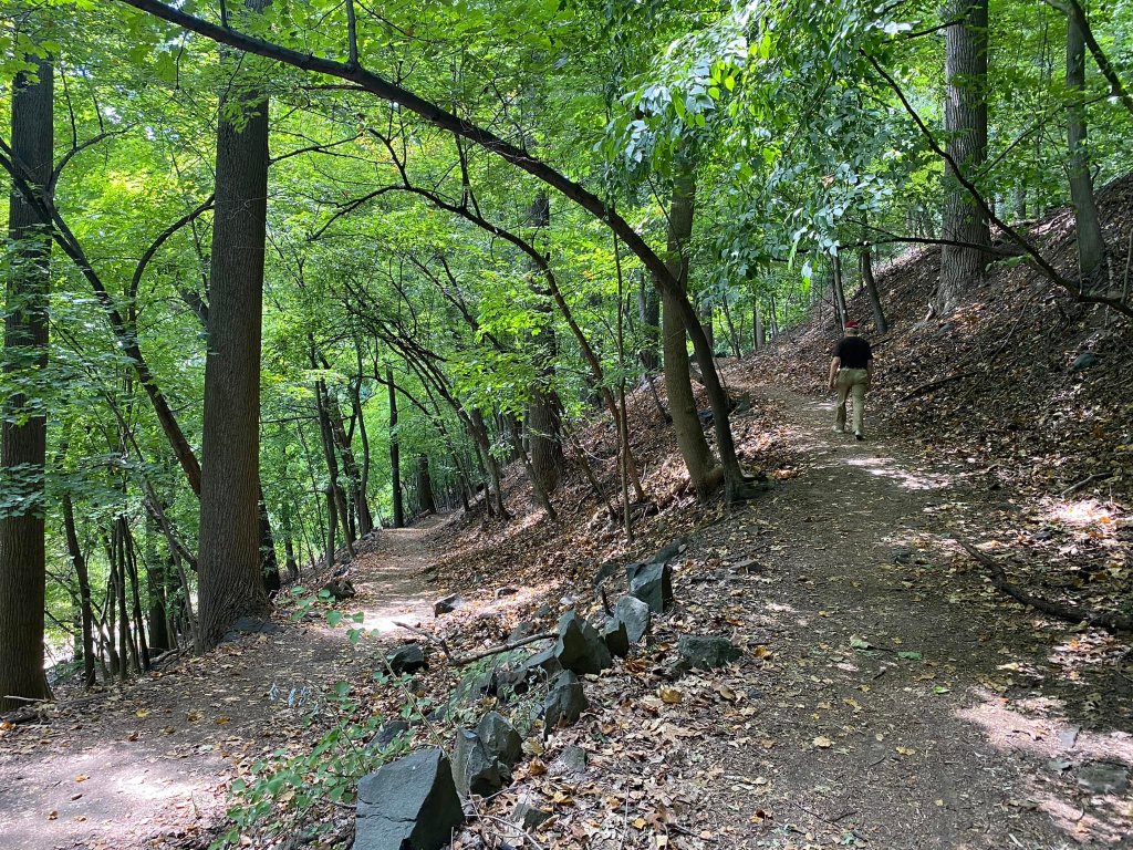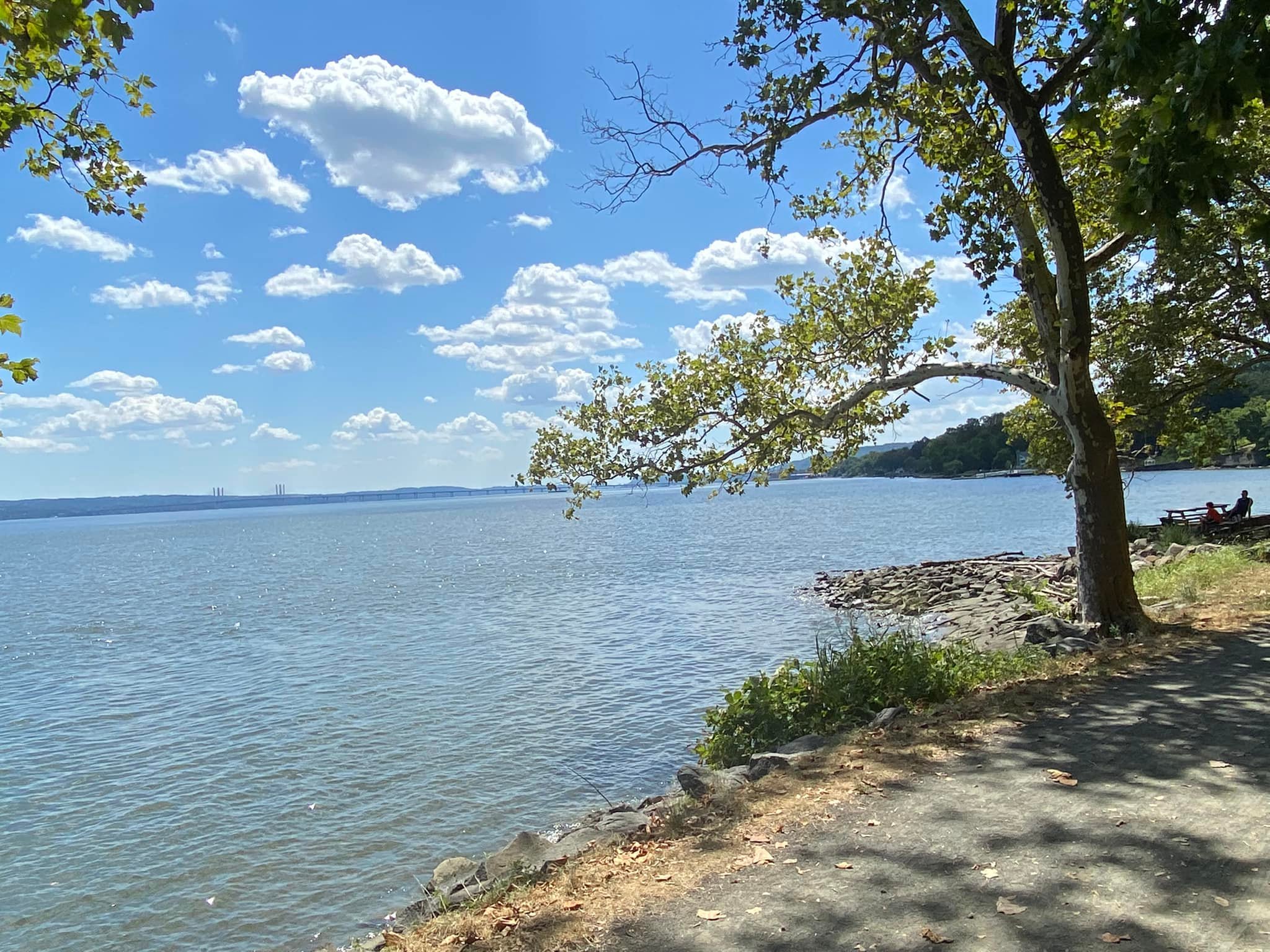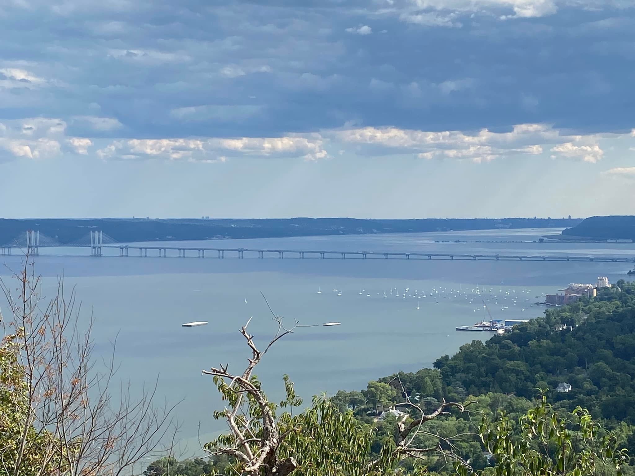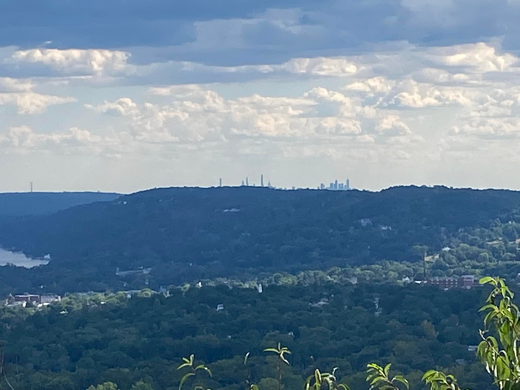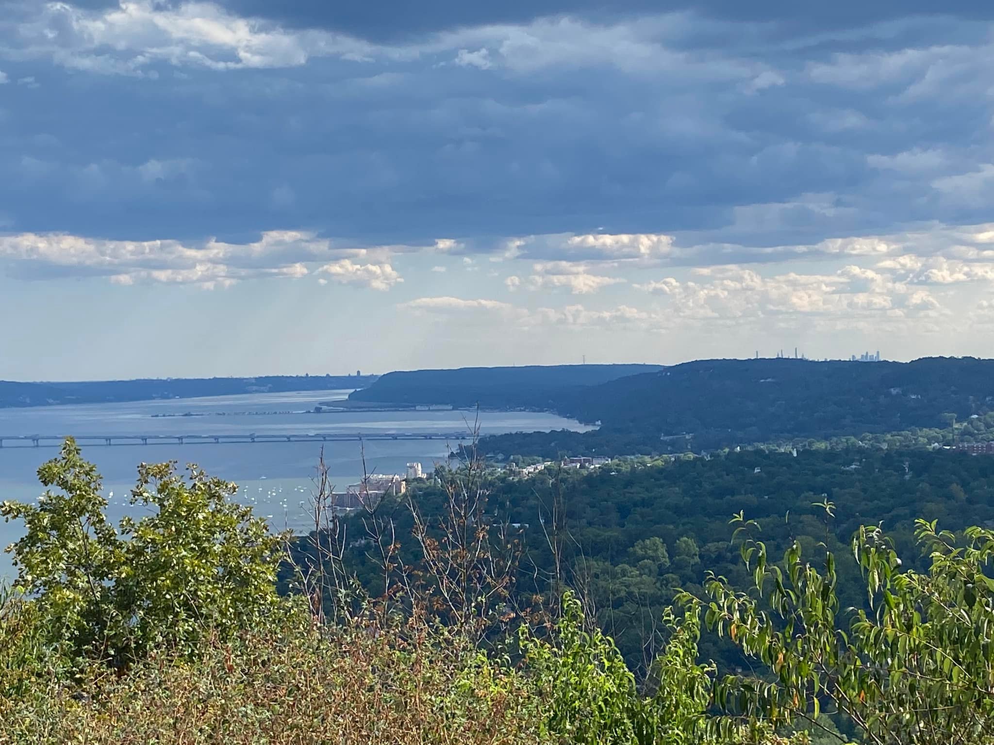 Okay, let’s fast forward to Hook Summit, overlooking the Hudson. Looking south you can see the Mario Cuomo Bridge, and New York City skyscrapers rising beyond the horizon.
