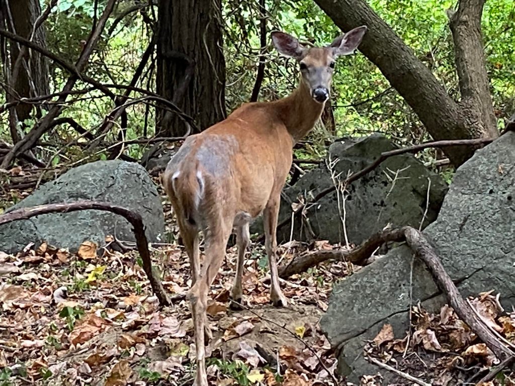 There were five deer that stuck together, including two young bucks (you can see the horns on the one photographed above).