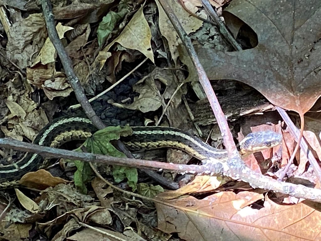 We also saw hawks, a badger (not close enough for a decent picture) and this snake who knew how to “find her light”.
