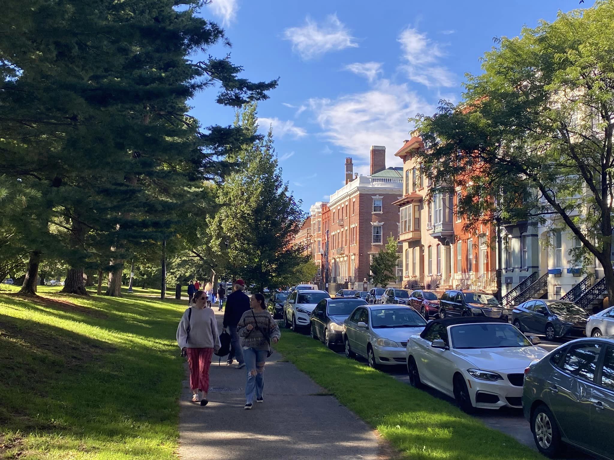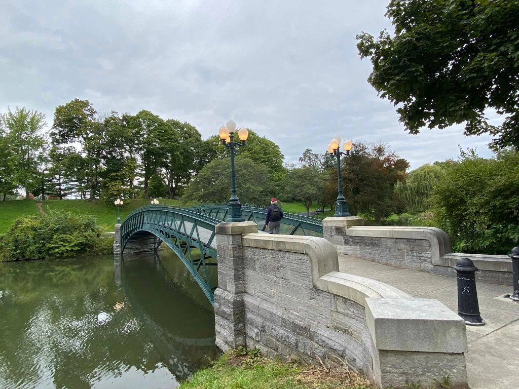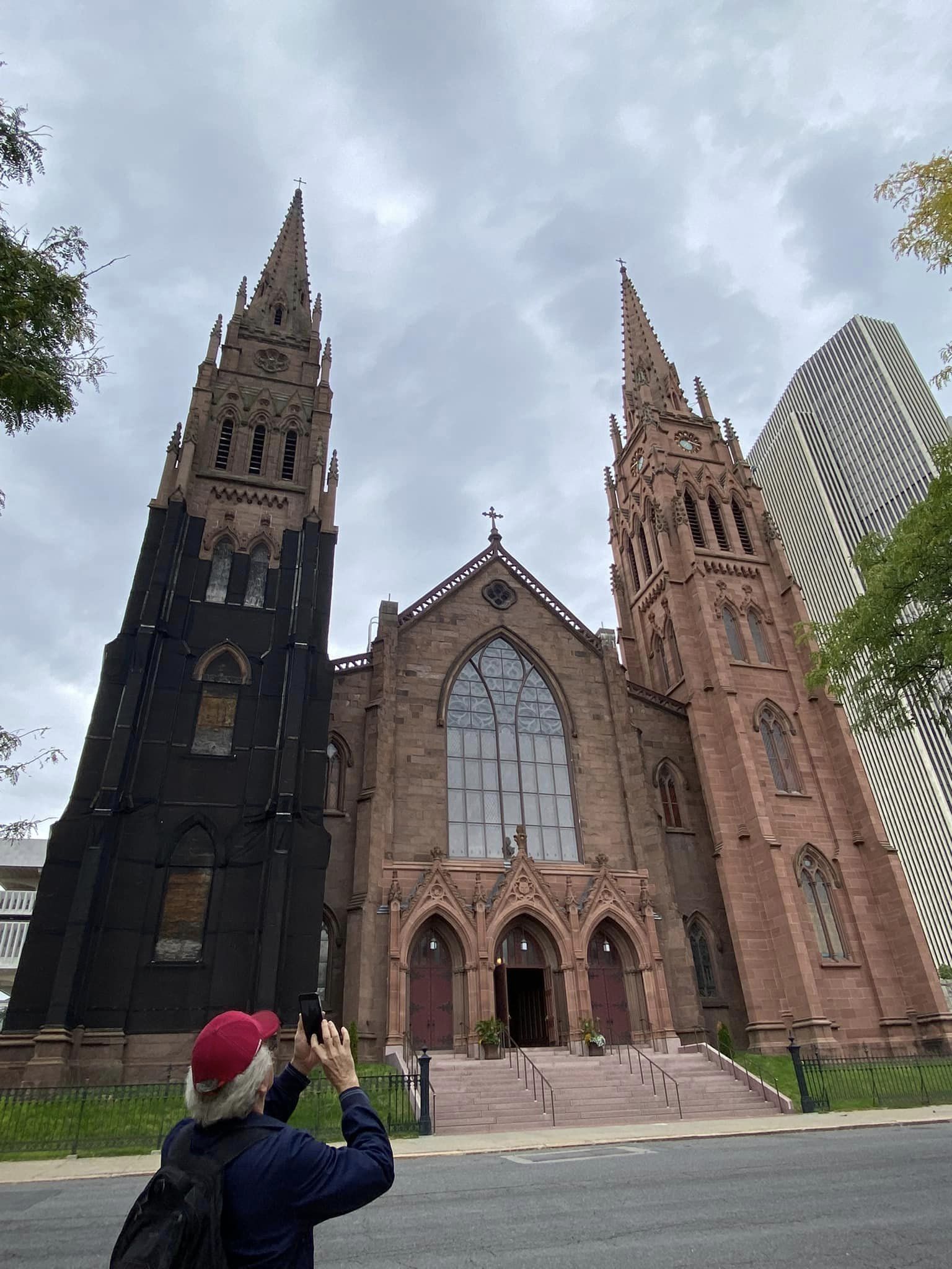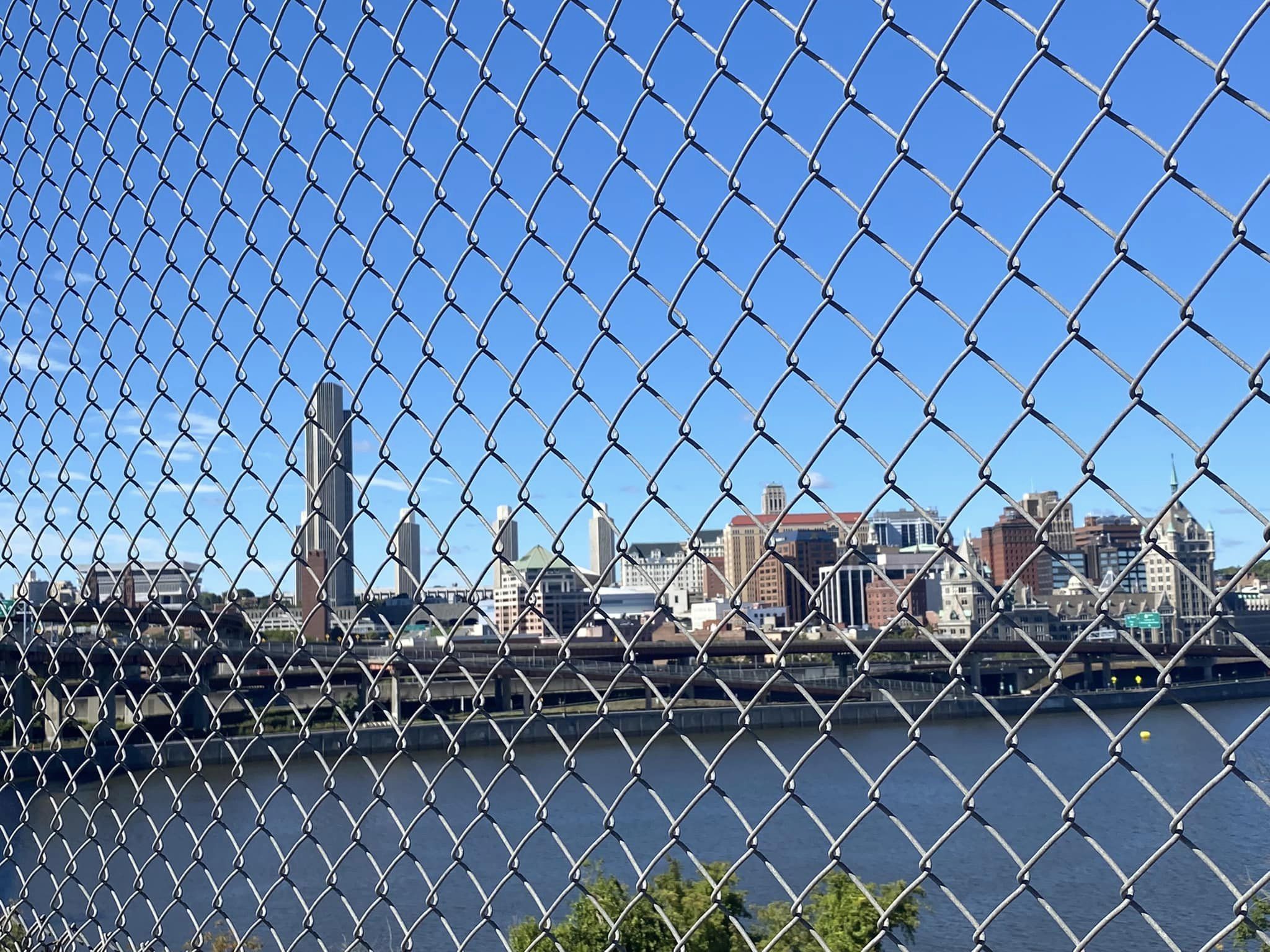 As we walked from the train station across the Hudson towards downtown Albany, our first views of the city were obscured by the wire mesh on the bridge.