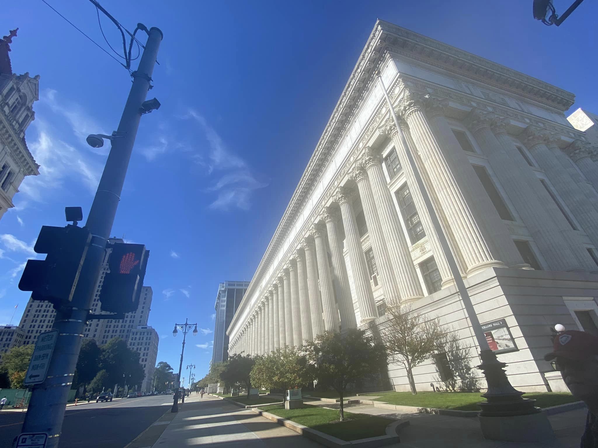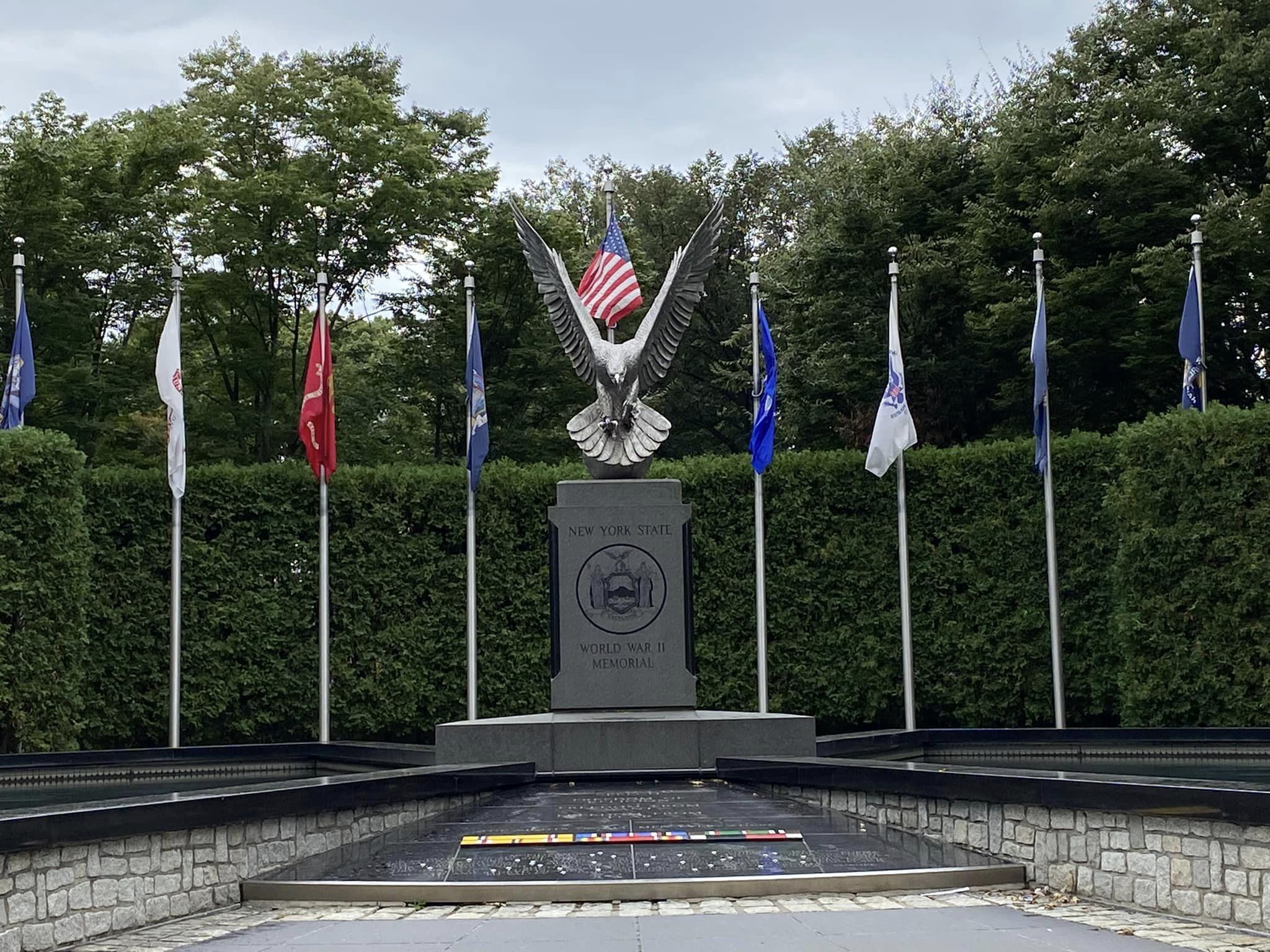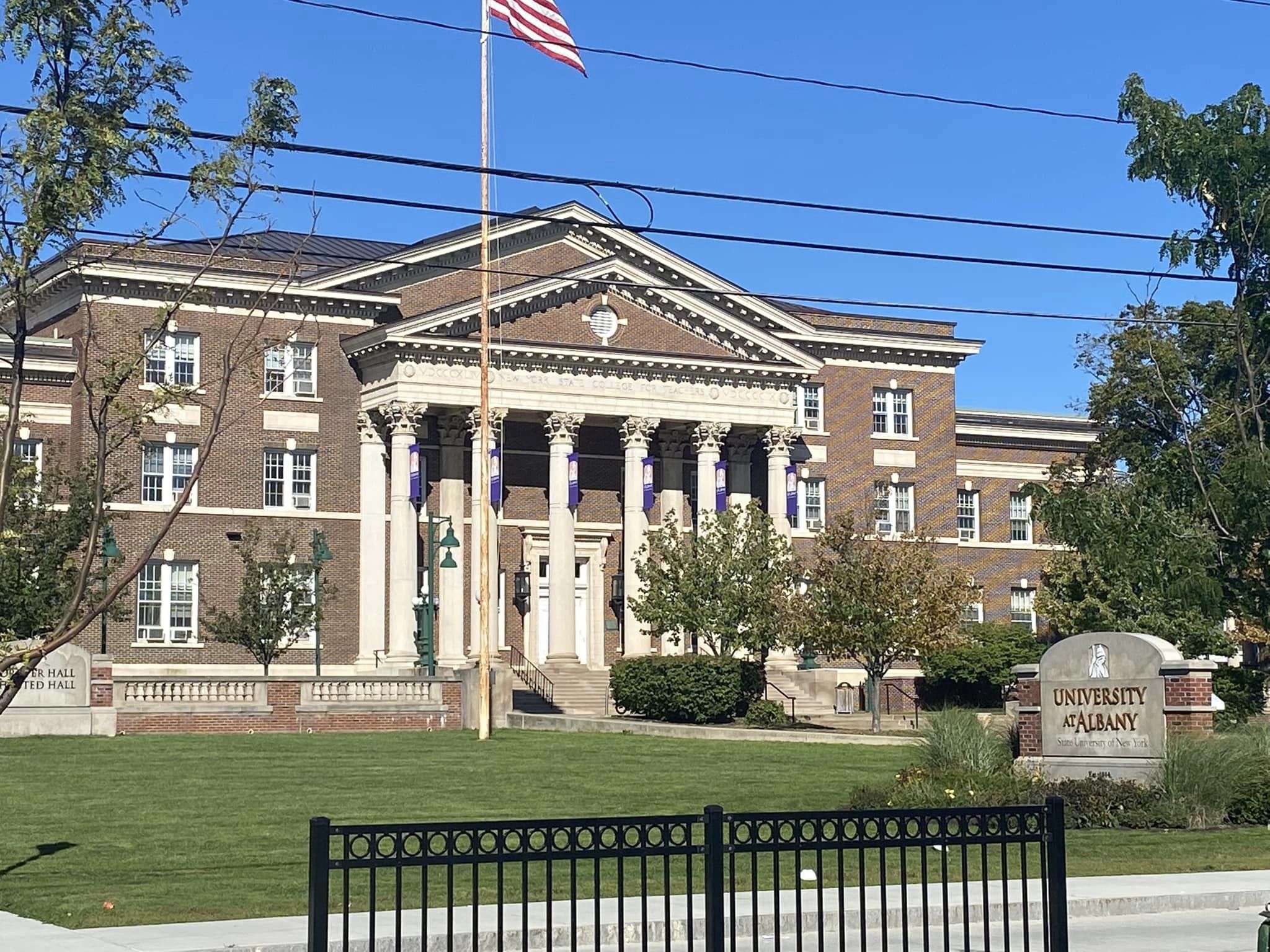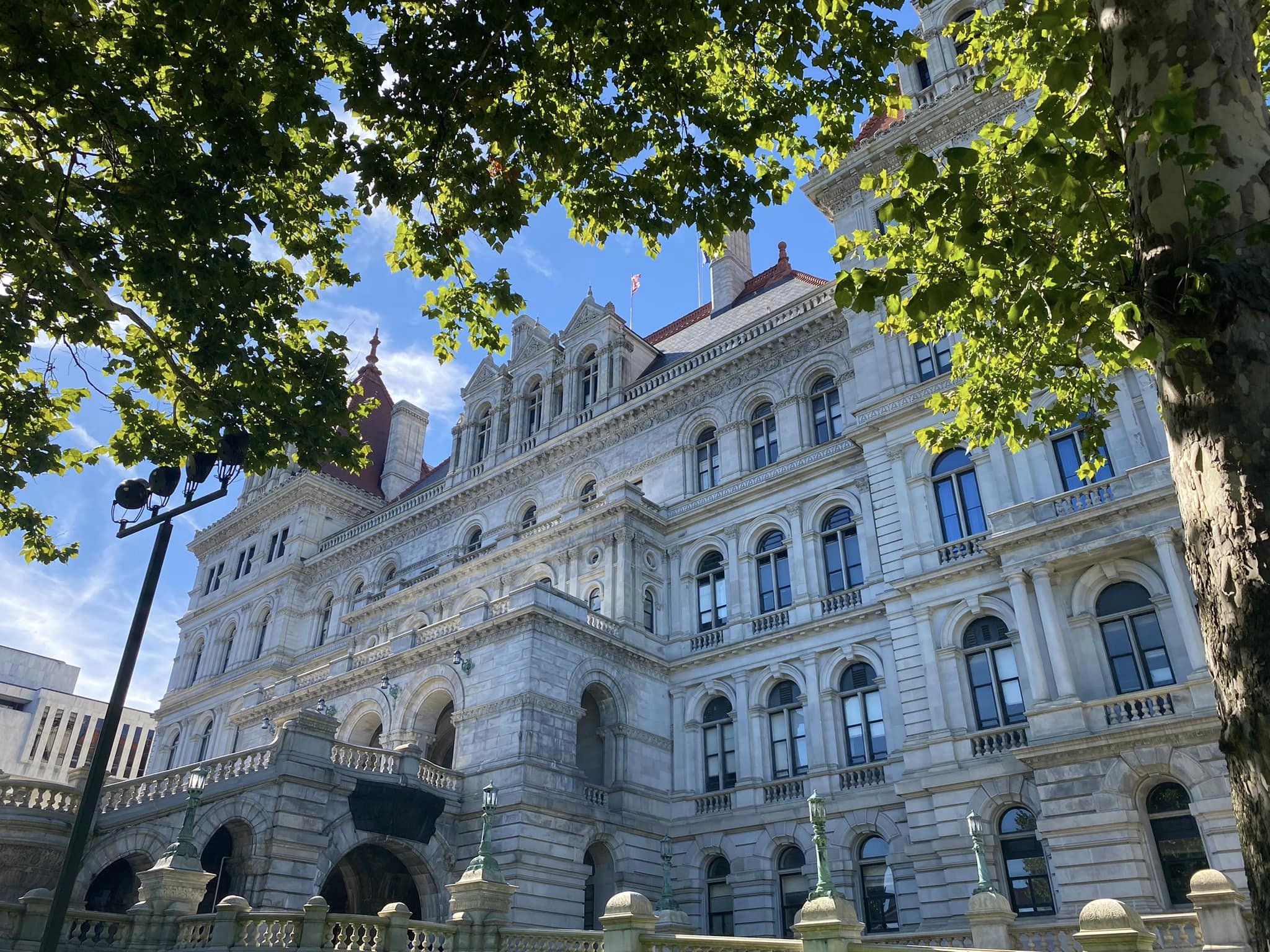 Empire State Plaza’s brutalist architecture rearing its forbidding forms.