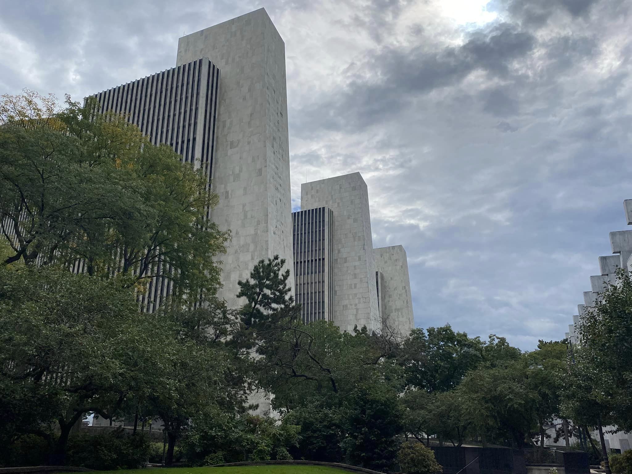 Rockefeller conceived the basic design of the complex with architect Wallace Harrison, using the vast scope and style of Brasilia, Versailles and Chandigarh as models. Critics lambasted the result as an “outdated notion of what modern architecture, not to mention modern government should stand for”, comparing the buildings to those of fascist governments. (More on all of that here.)