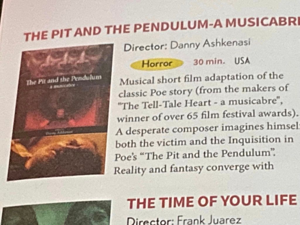 “The Pit and the Pendulum – a musicabre” was 4th on the program. The screening conditions were very good. Large screen and excellent sound system. Although NYSIFF played the stereo file, not the 5.1 mix, it still felt like surround sound.