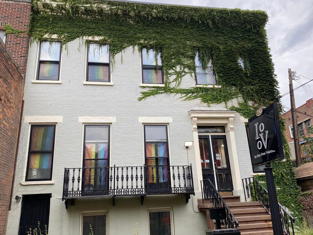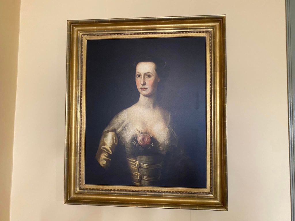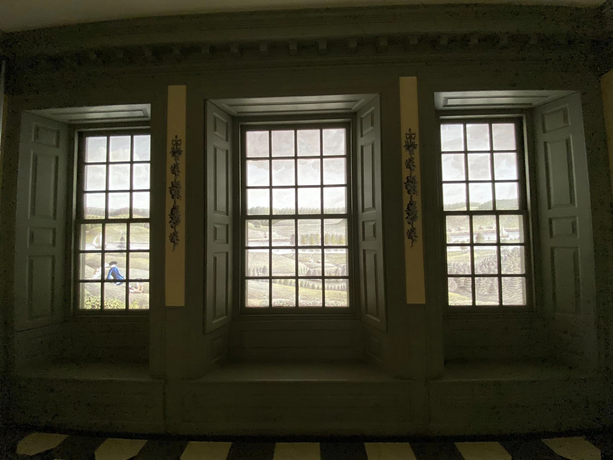 In the upstairs windows a reproduction of an 18th painting shows close to the exact view of landscape and Hudson river the Schuyler family would have had