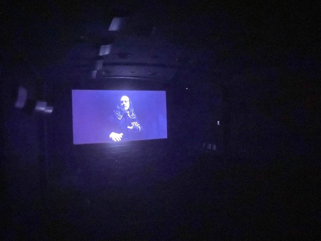 Which allowed me to take these pictures of my short film musical Edgar Allan Poe adaptation being test screened in the empty theater before the evening’s program: