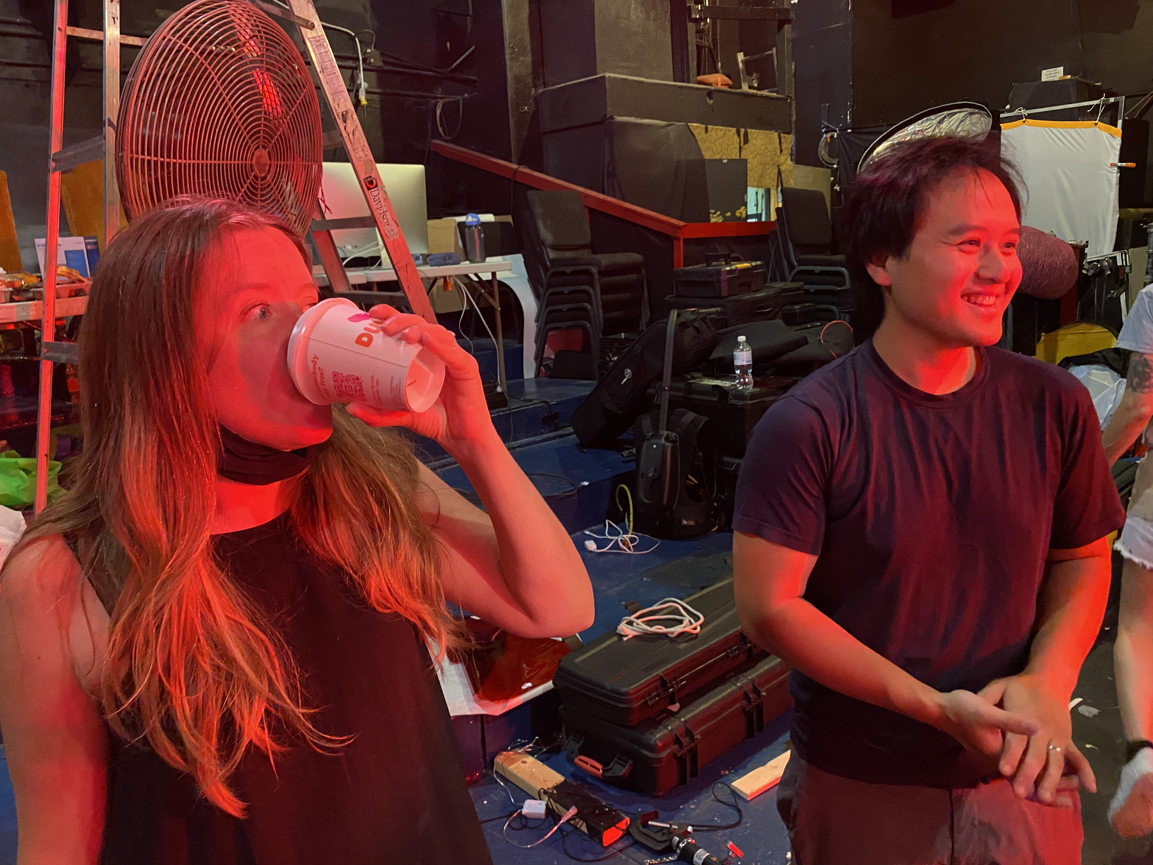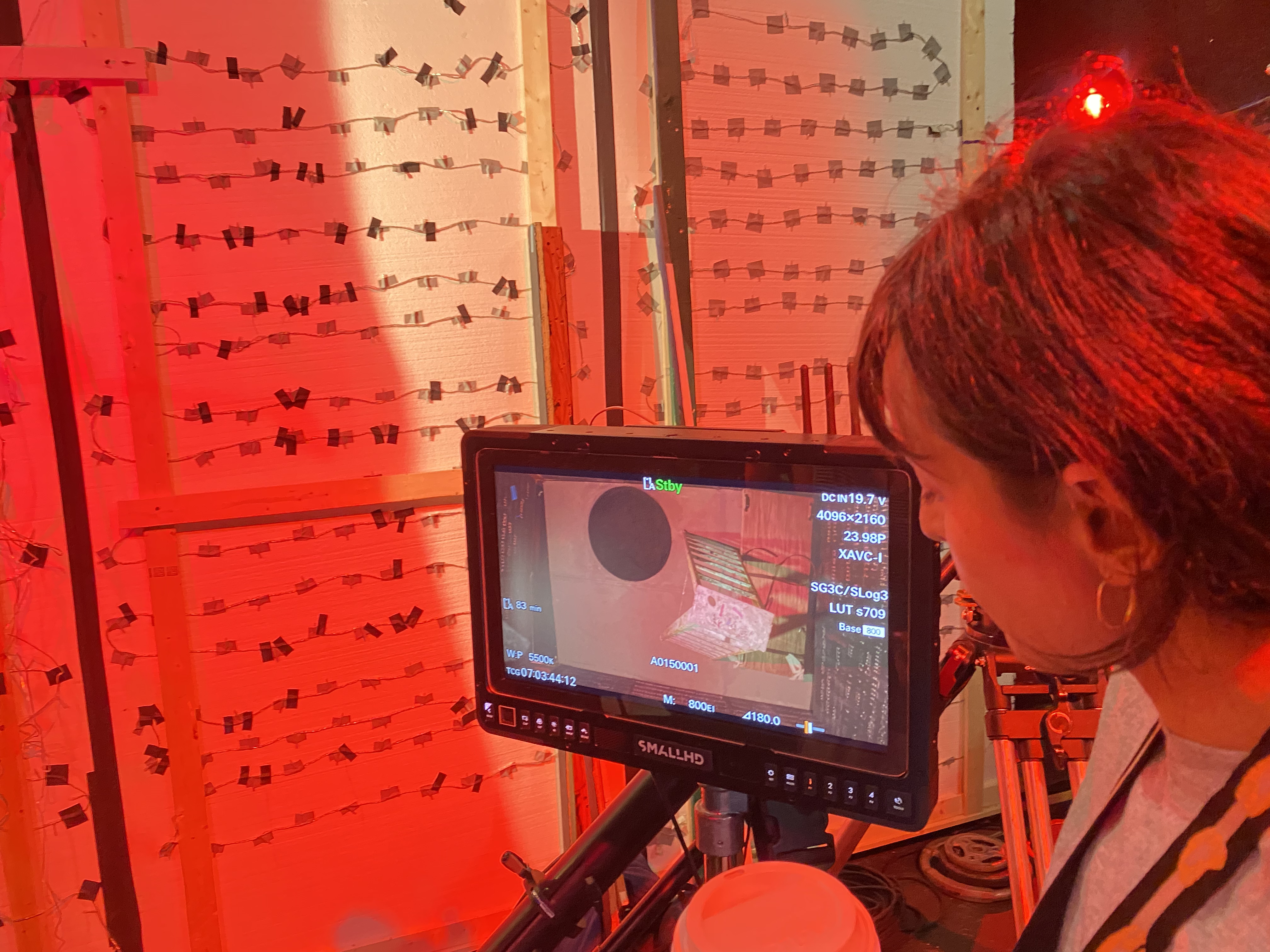 1st Assistant Cameraperson Han Jang Houston imitating that shot, which we also saw in the monitor in the top of this post.