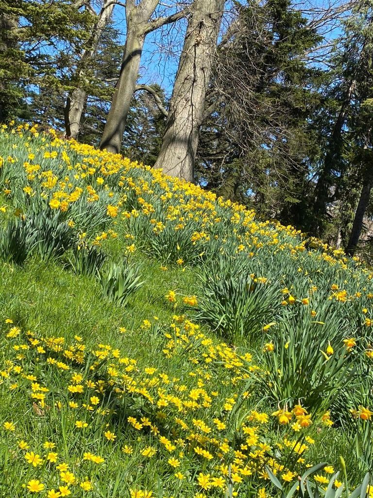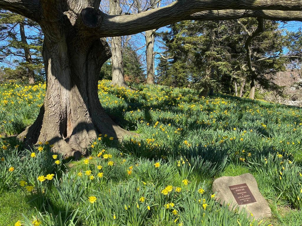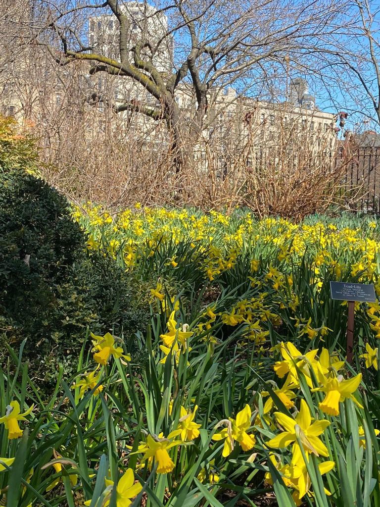 The BBG decided to restrict their daffodils not just to Daffodil Hill – which we will get to soon – but planted a welcoming brigade of them right by the Eastern Parkway entrance.